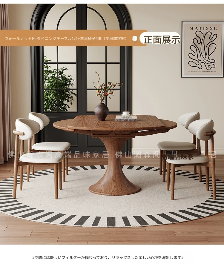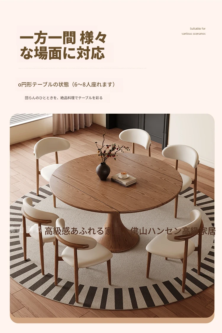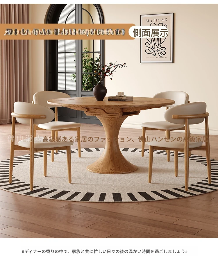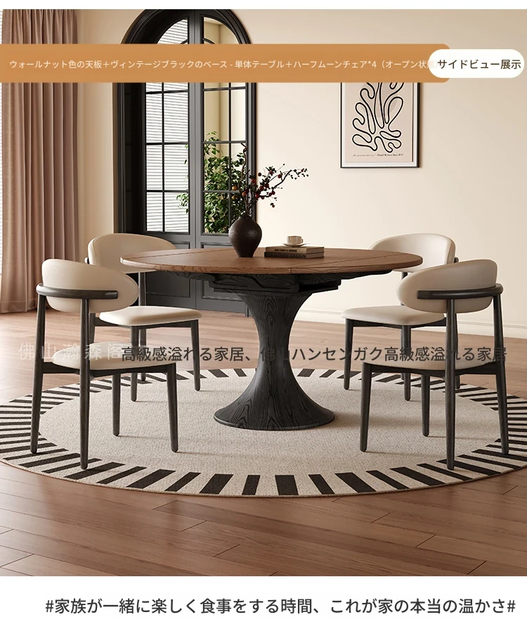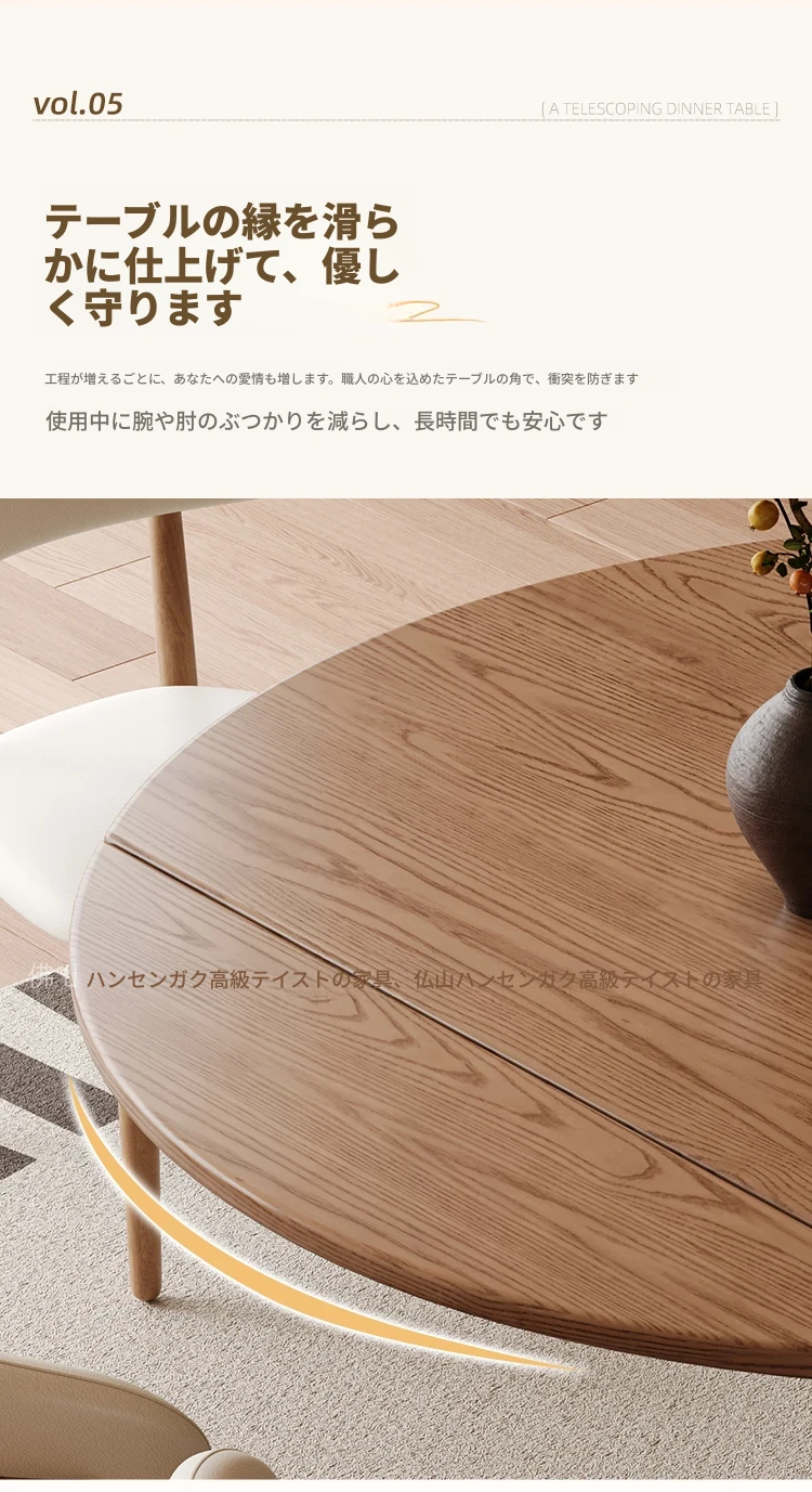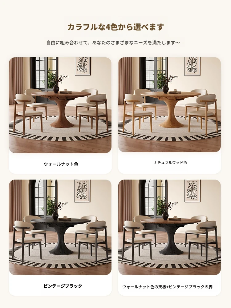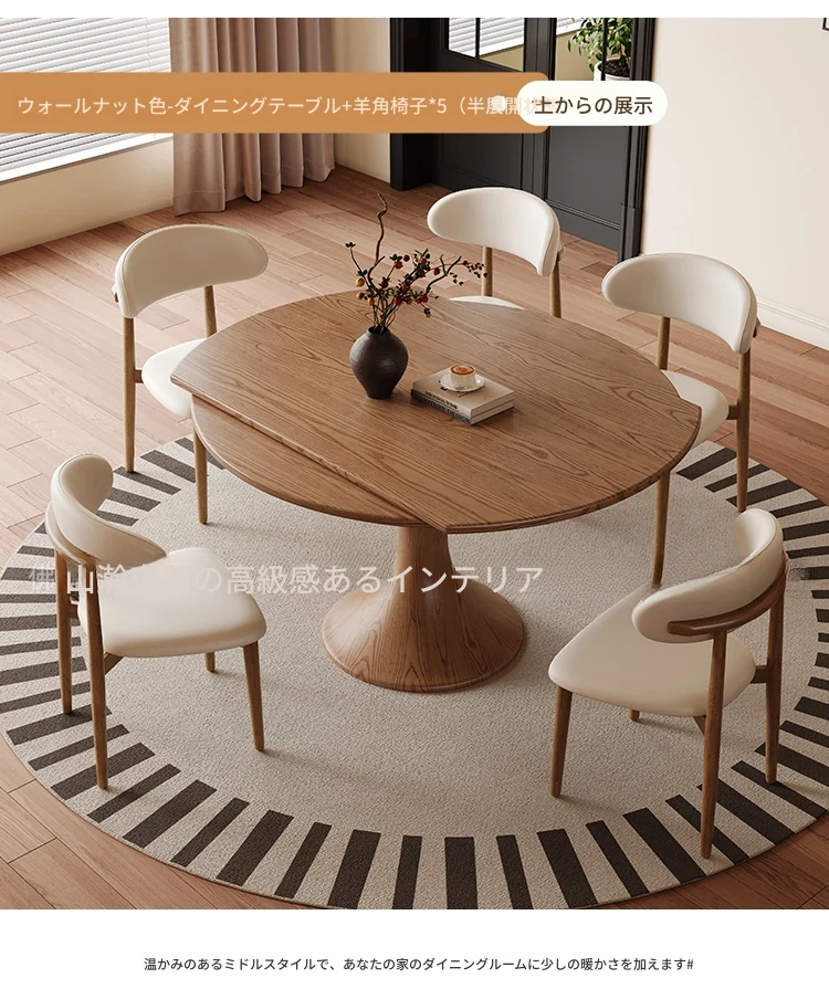2025年新款!中古風スタイルの実木ダイニングテーブル&チェアセット。リビングにぴったりな小型拡張型、丸型テーブルで、家族の団らんや友人との集まりに最適です!
