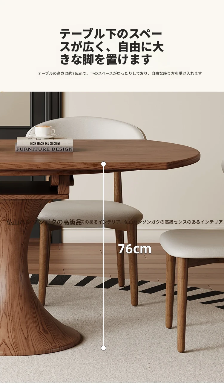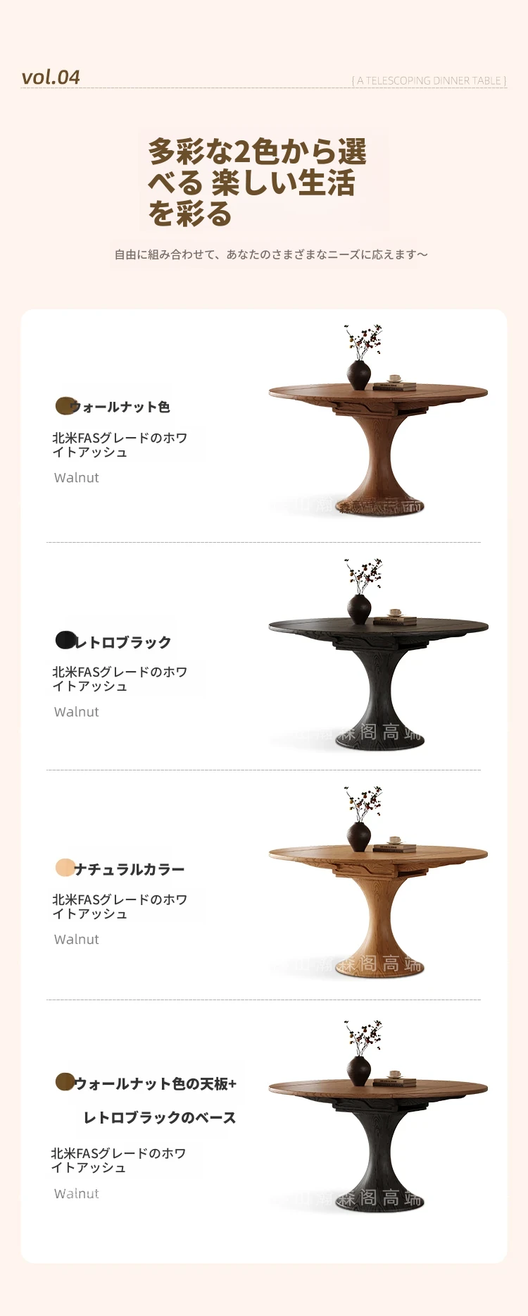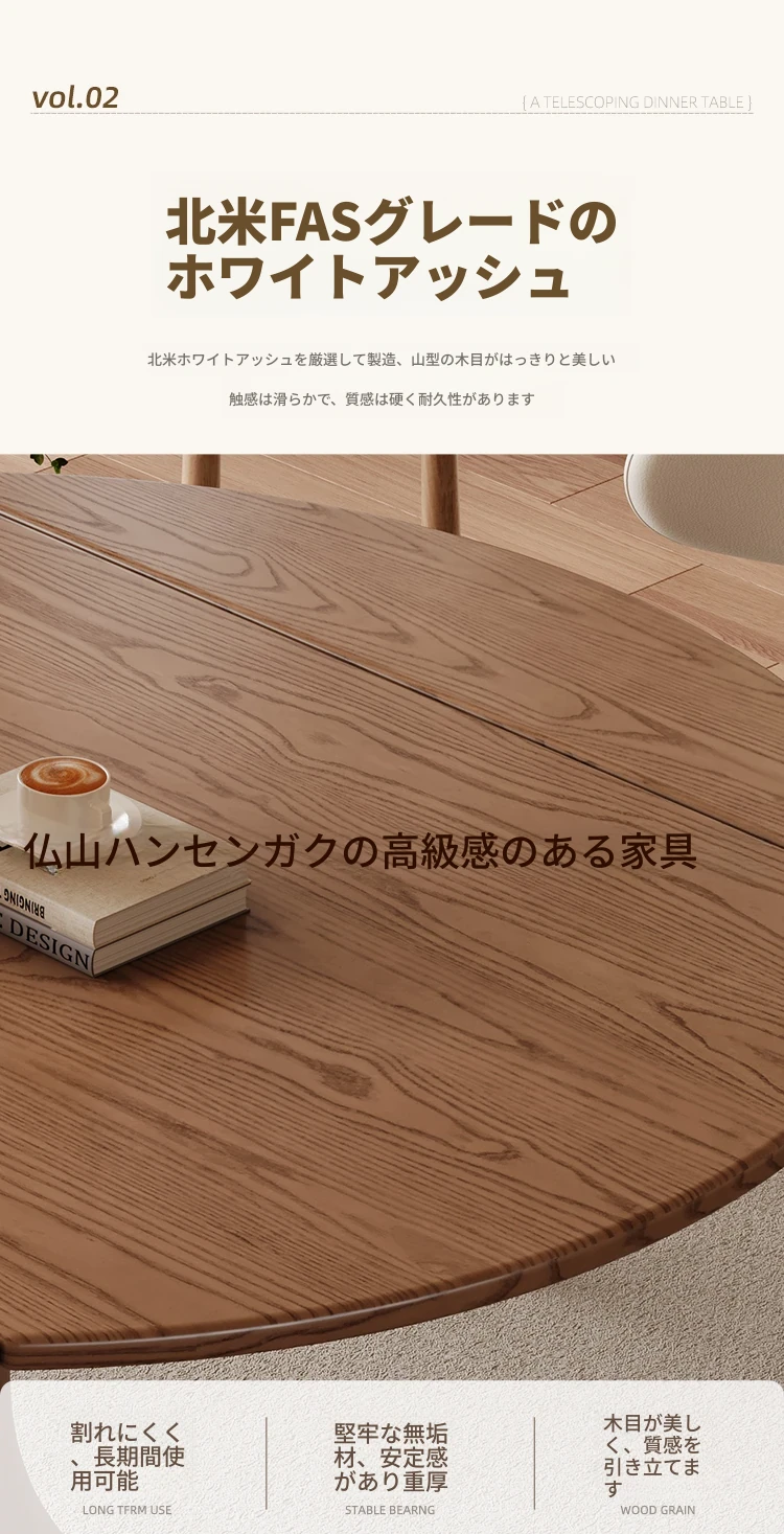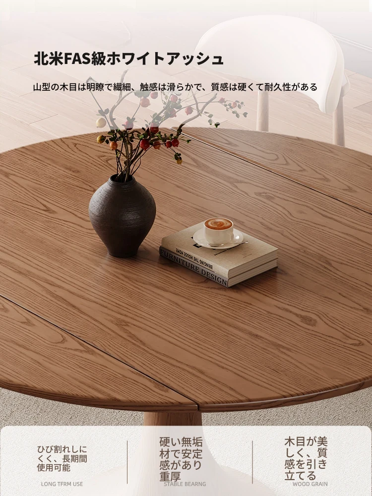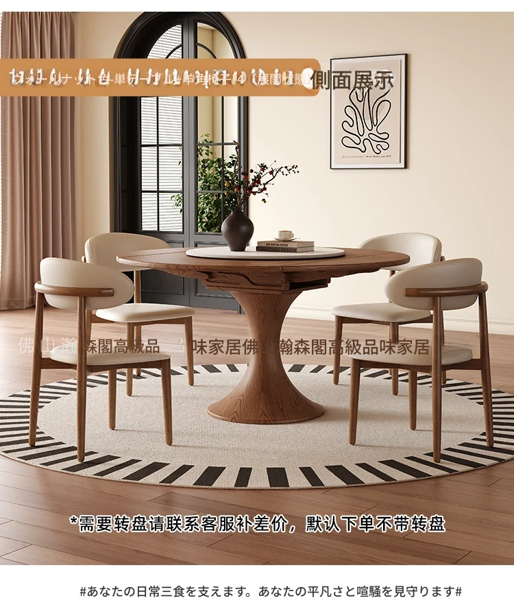 2025年新款!中古風スタイルの実木ダイニングテーブル&チェアセット。リビングにぴったりな小型拡張型、丸型テーブルで、家族の団らんや友人との集まりに最適です!
