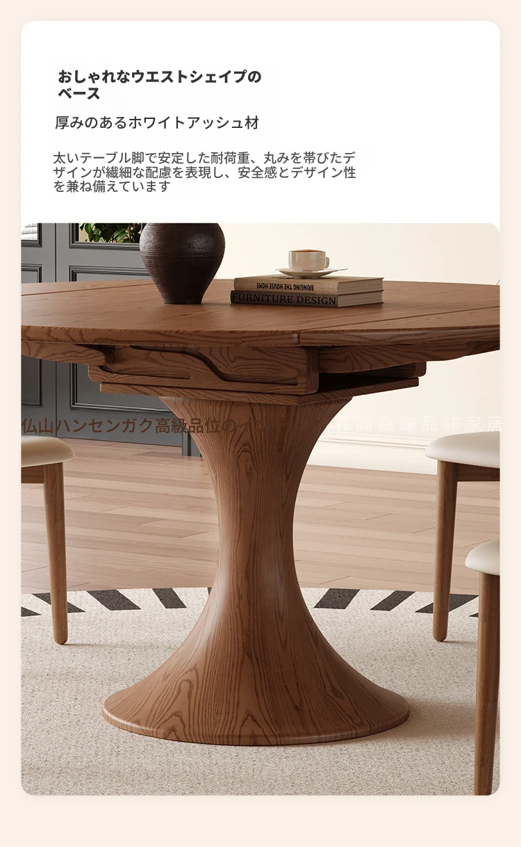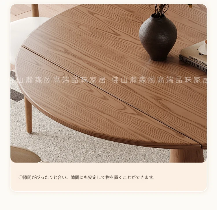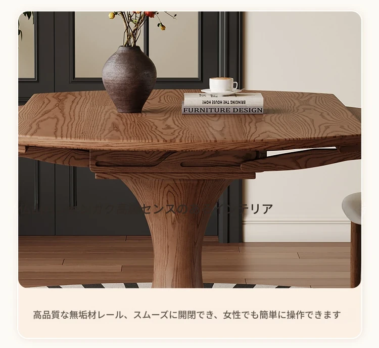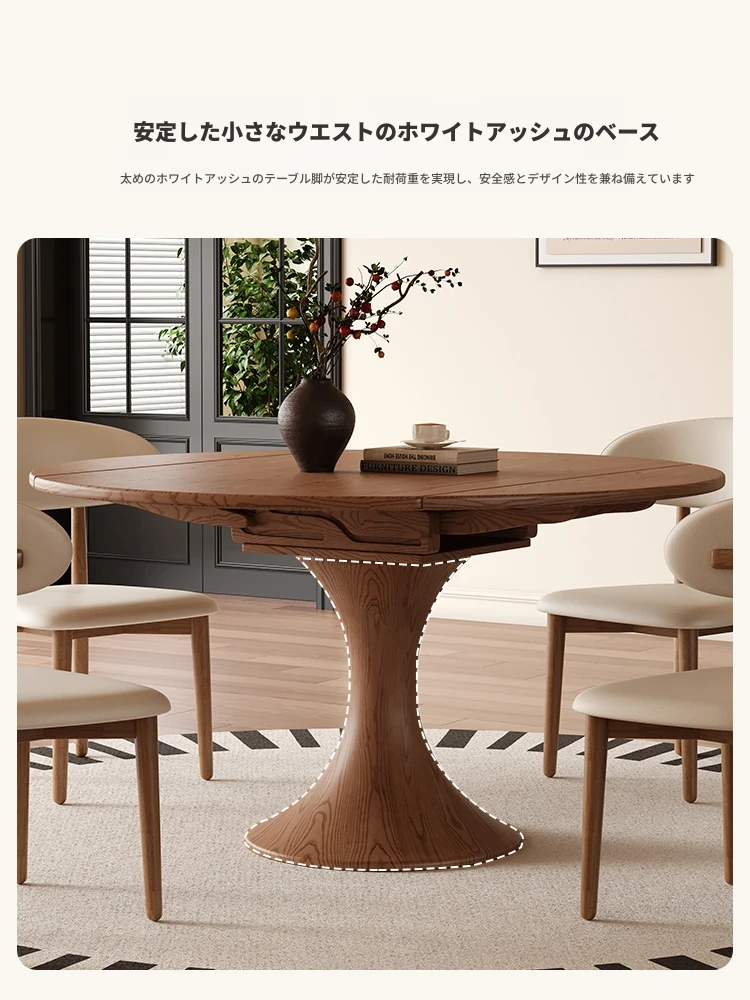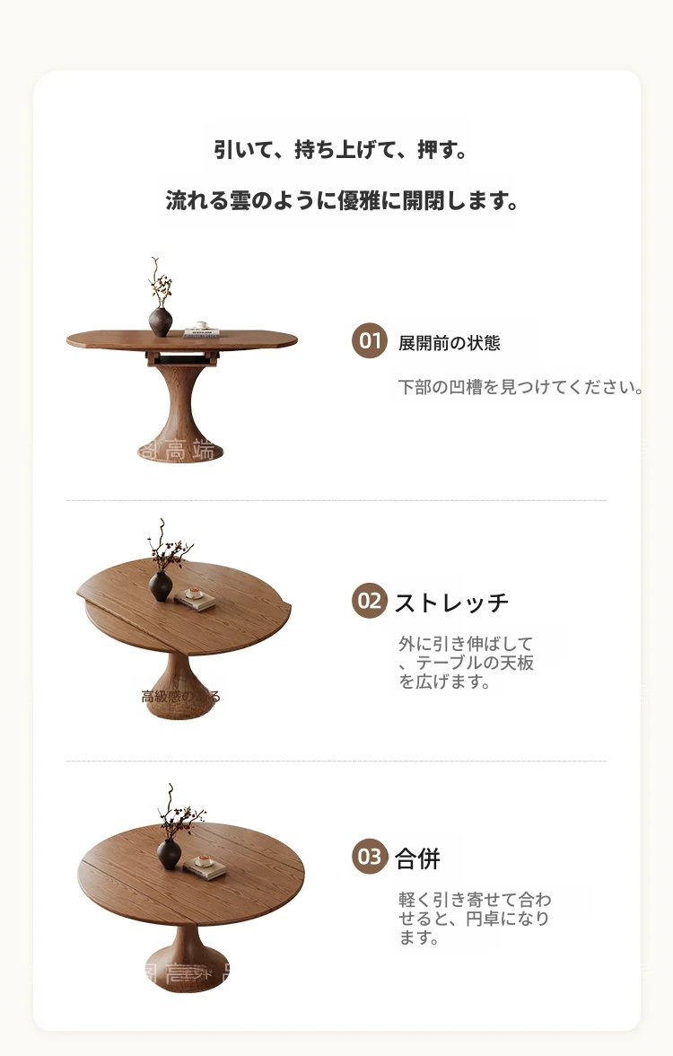 丸型と角型兼用の伸縮式ダイニングテーブル