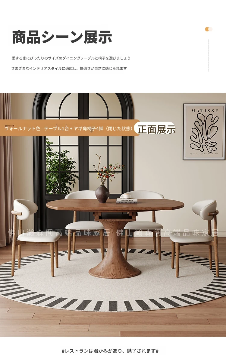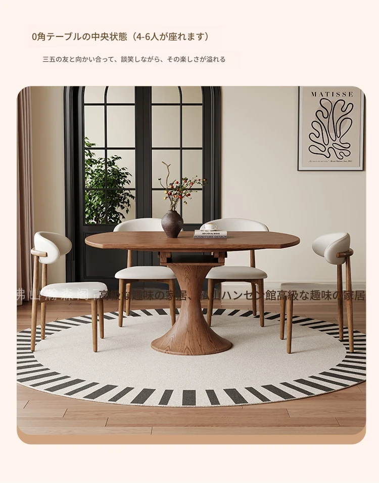 丸型と角型兼用の伸縮式ダイニングテーブル+6*ヒツジ角椅子