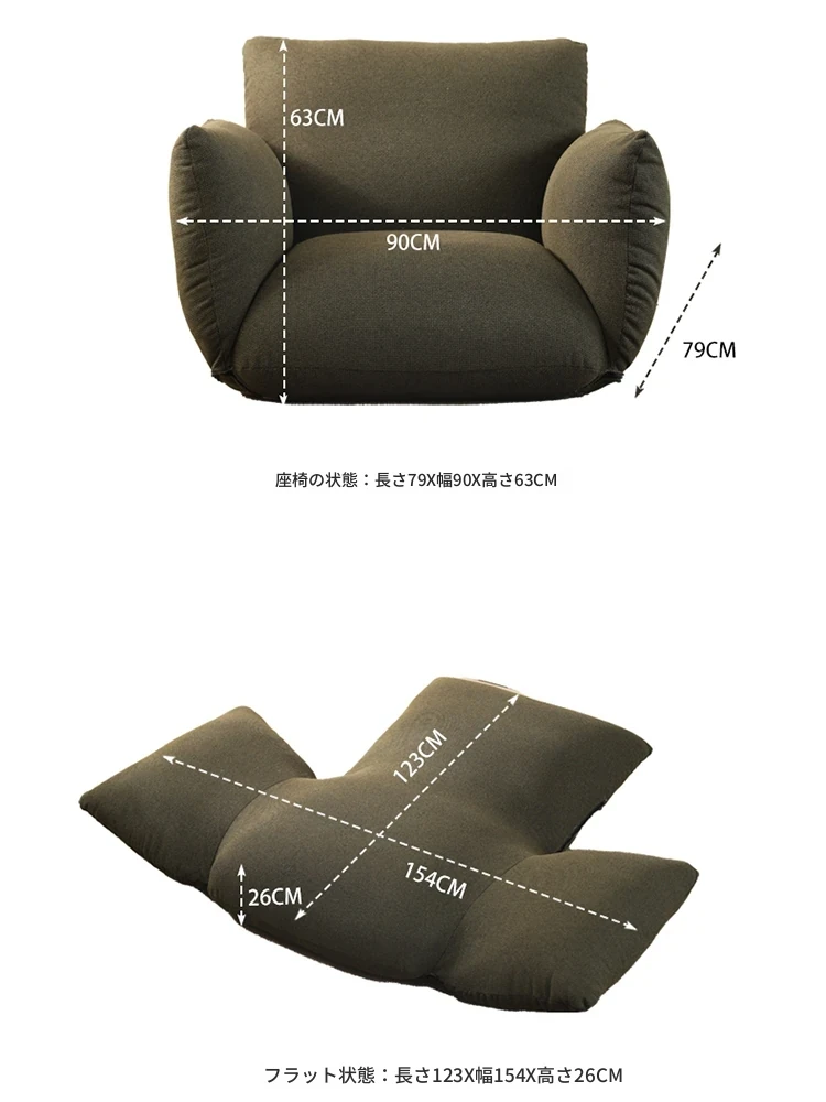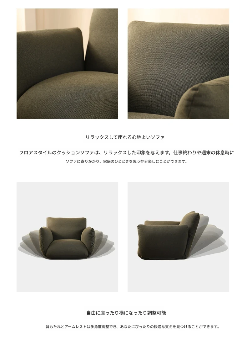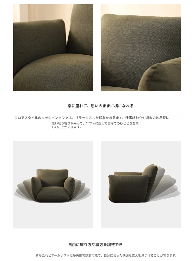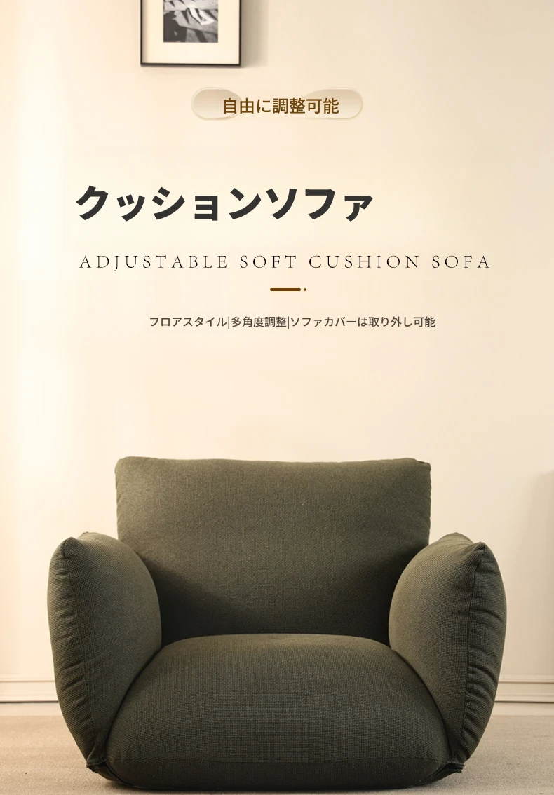 リラックスソファ 一人用調整可能なクッション付き 小型スペース向け 布製タタミスタイル 無印良品風の豆腐ブロックデザインで、快適さとおしゃれを両立!あなたのリビングにぴったりのアイテムです。