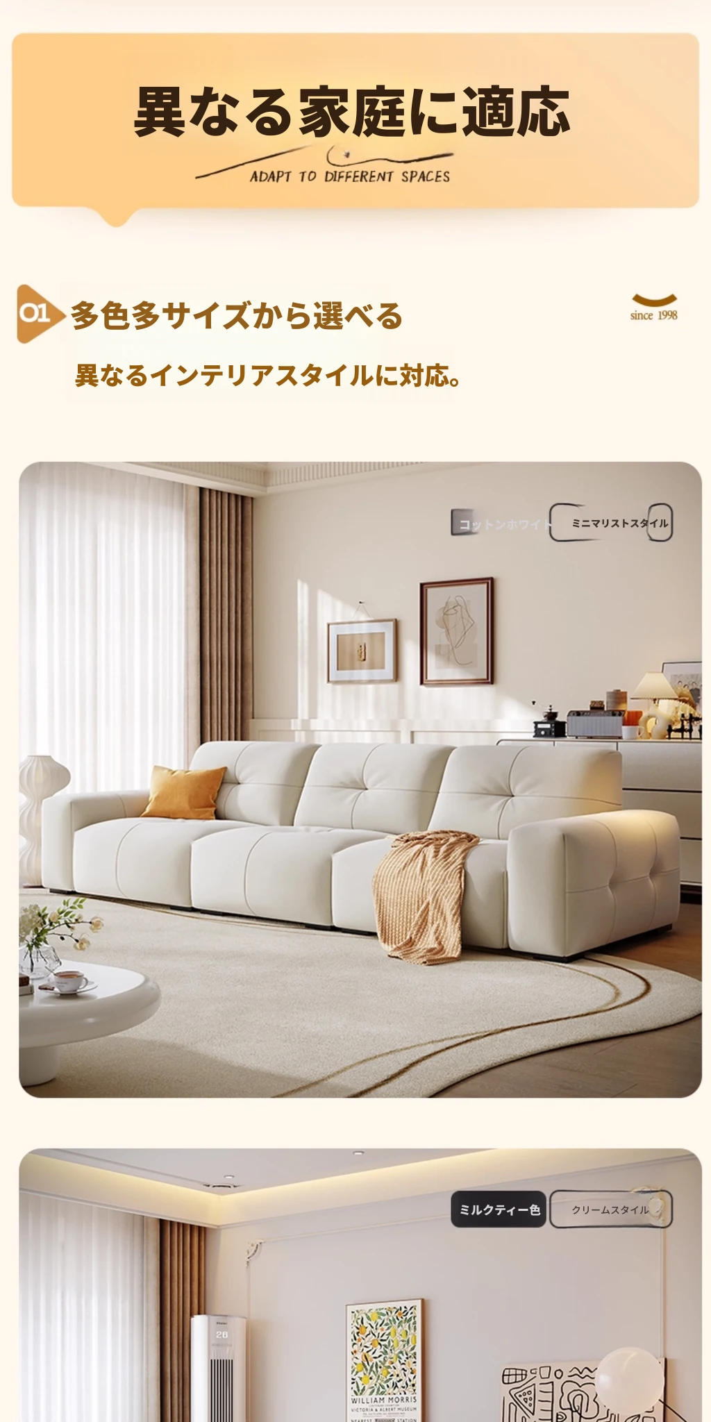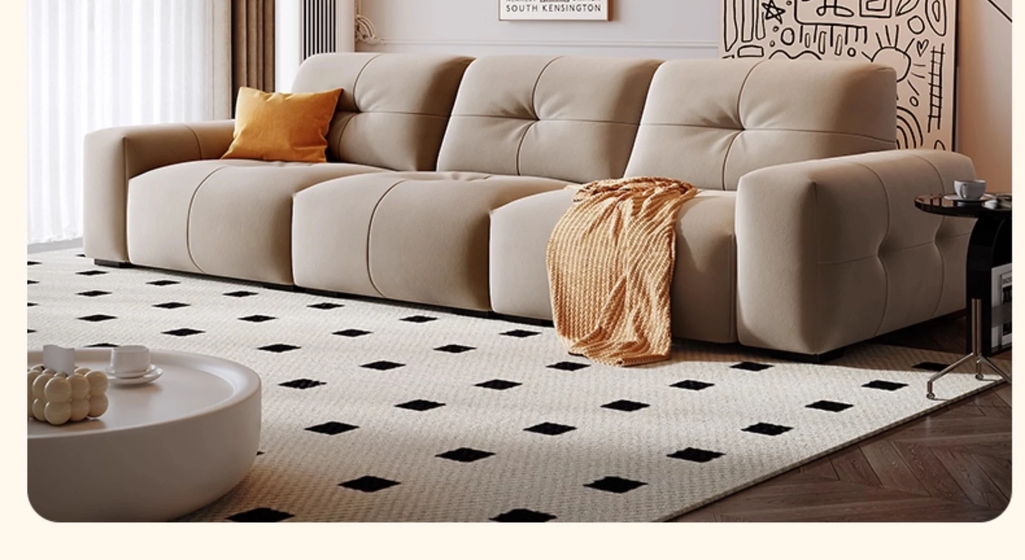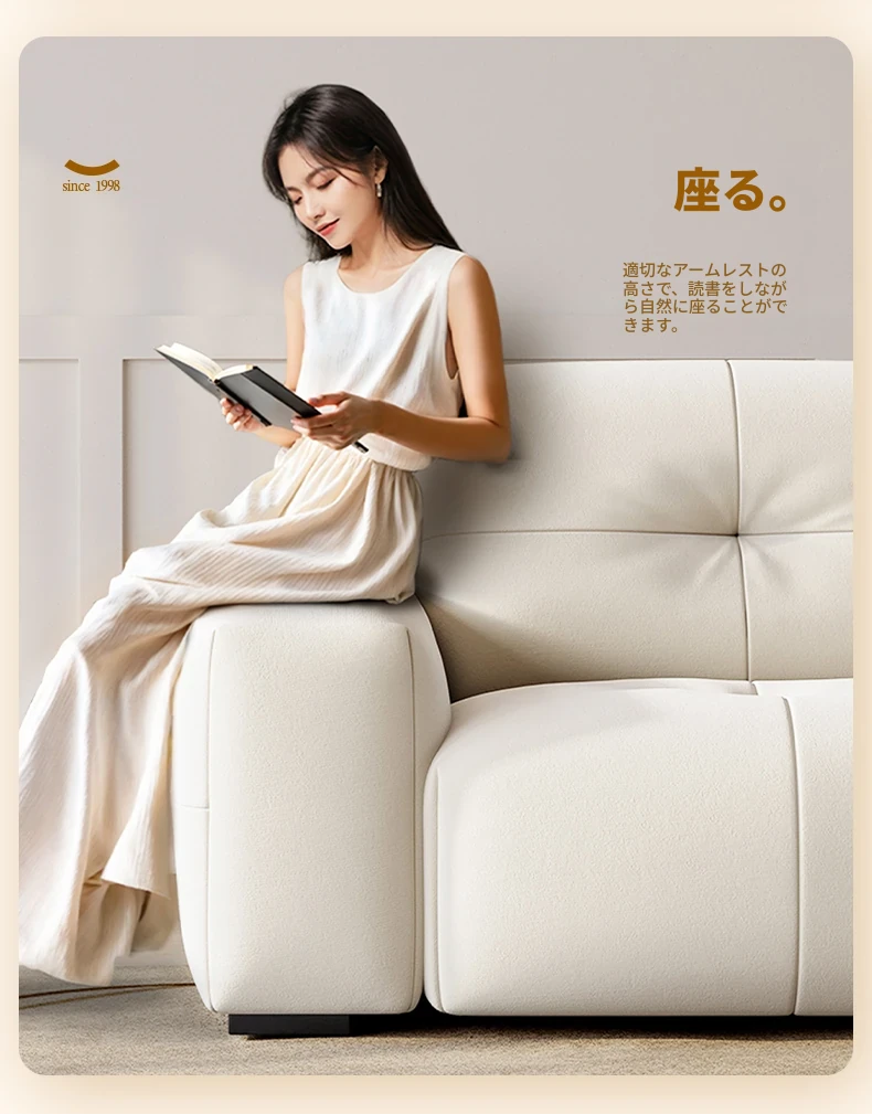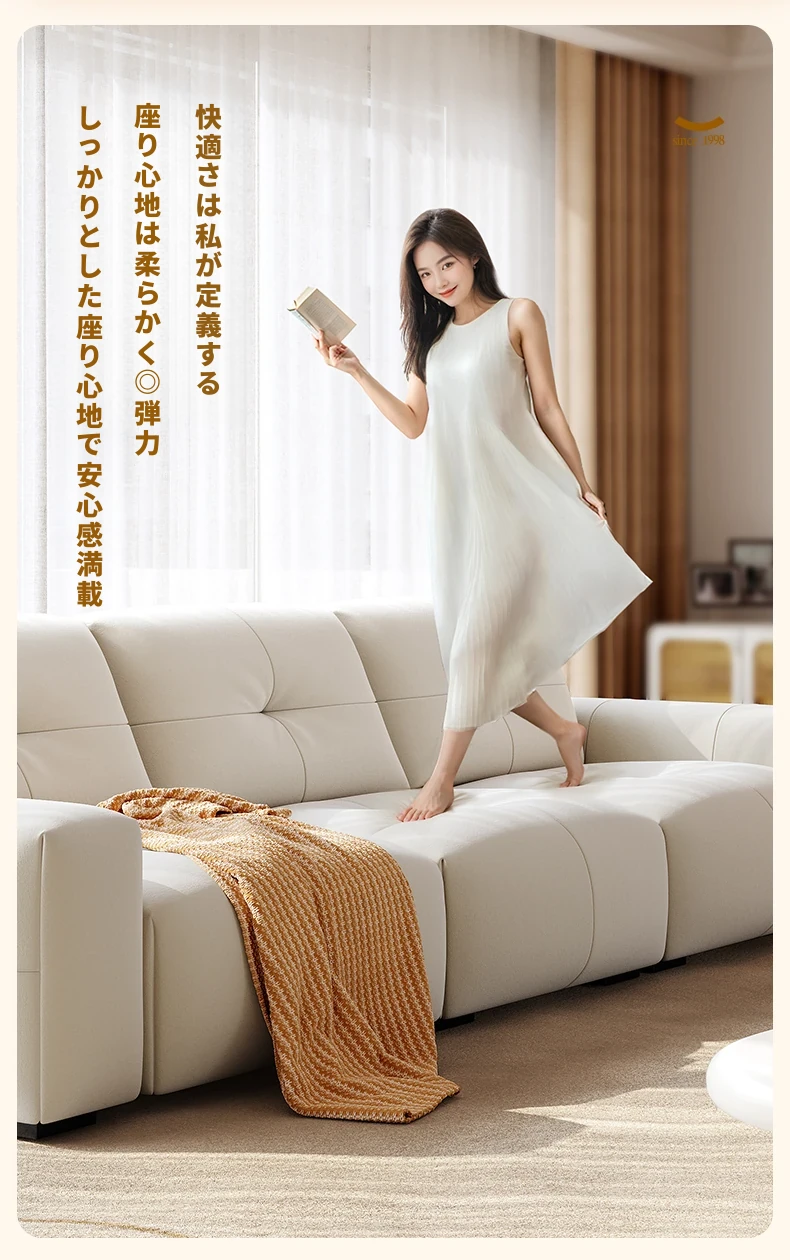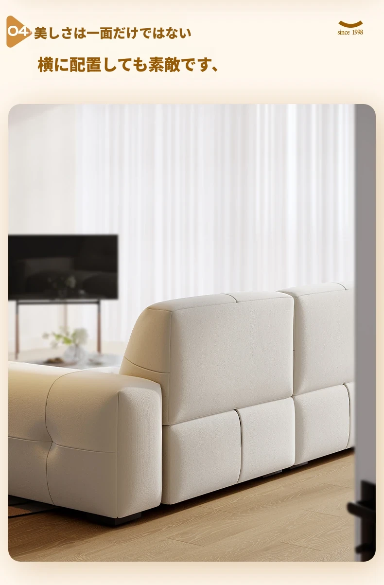 ラウンドピクセルモジュール機能付きファブリックソファ、前後調整可能な背もたれ、クリーミーな風合いの猫爪デザイン、小型スペースに最適!快適なリビング空間を演出します。