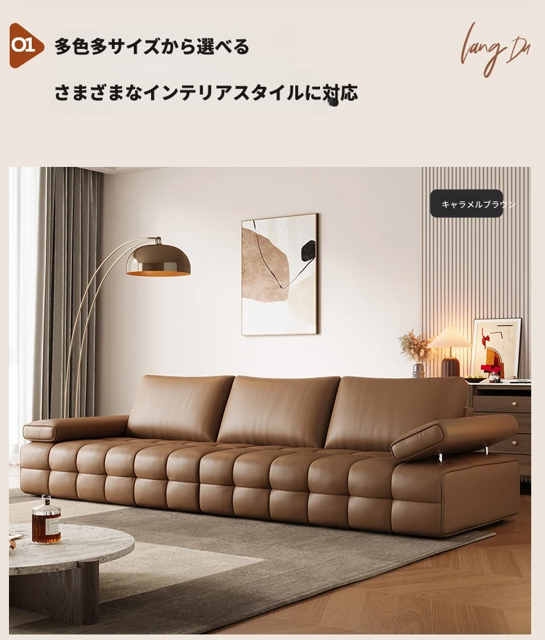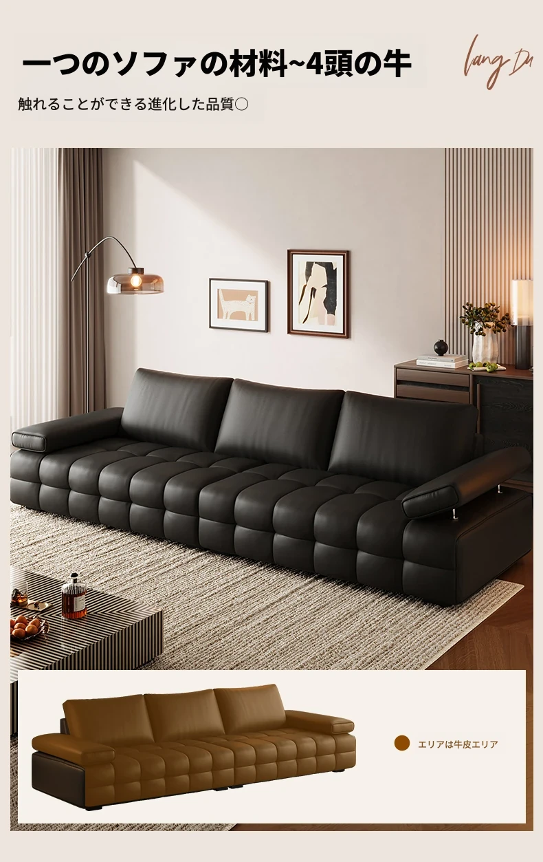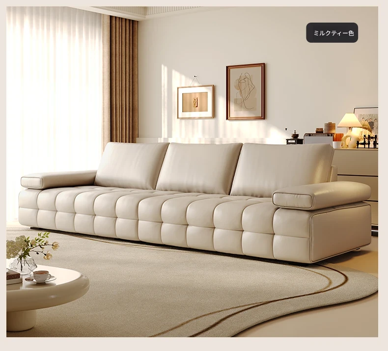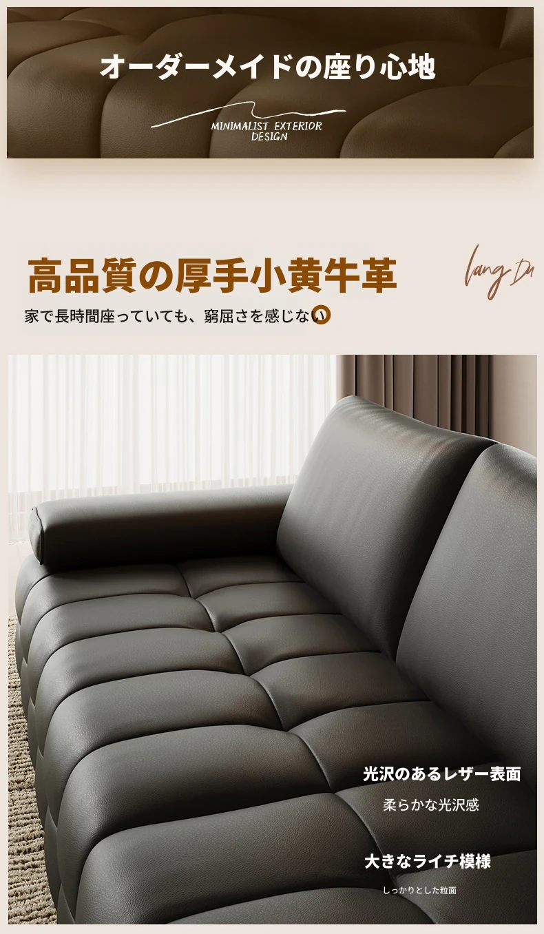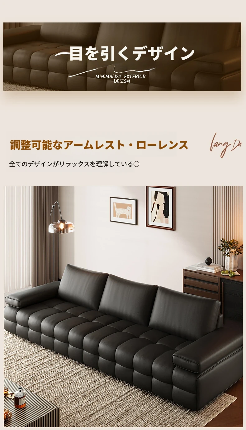 【ミツバチの願い社】ラグジュアリーなローレンス本革ソファ イタリアンスタイルの横型リビング用