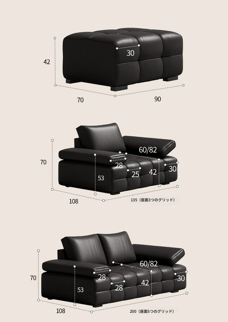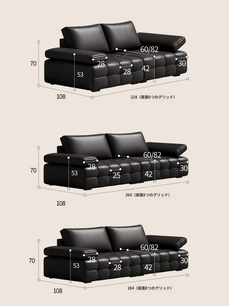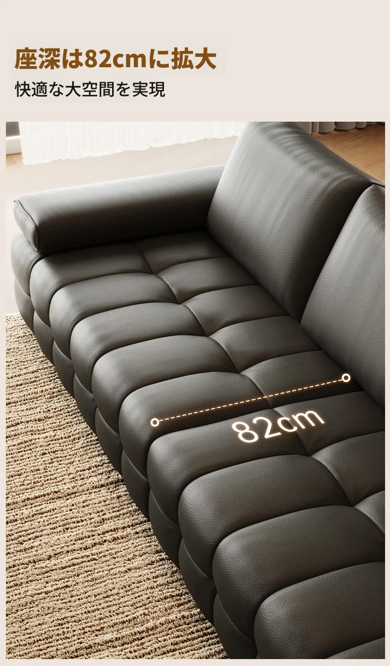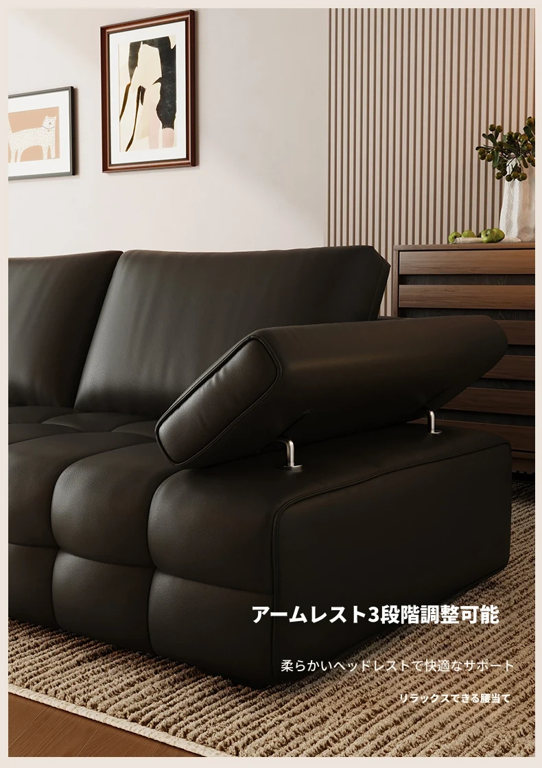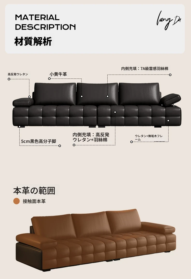 【ミツバチの願い社】ラグジュアリーなローレンス本革ソファ イタリアンスタイルの横型リビング用