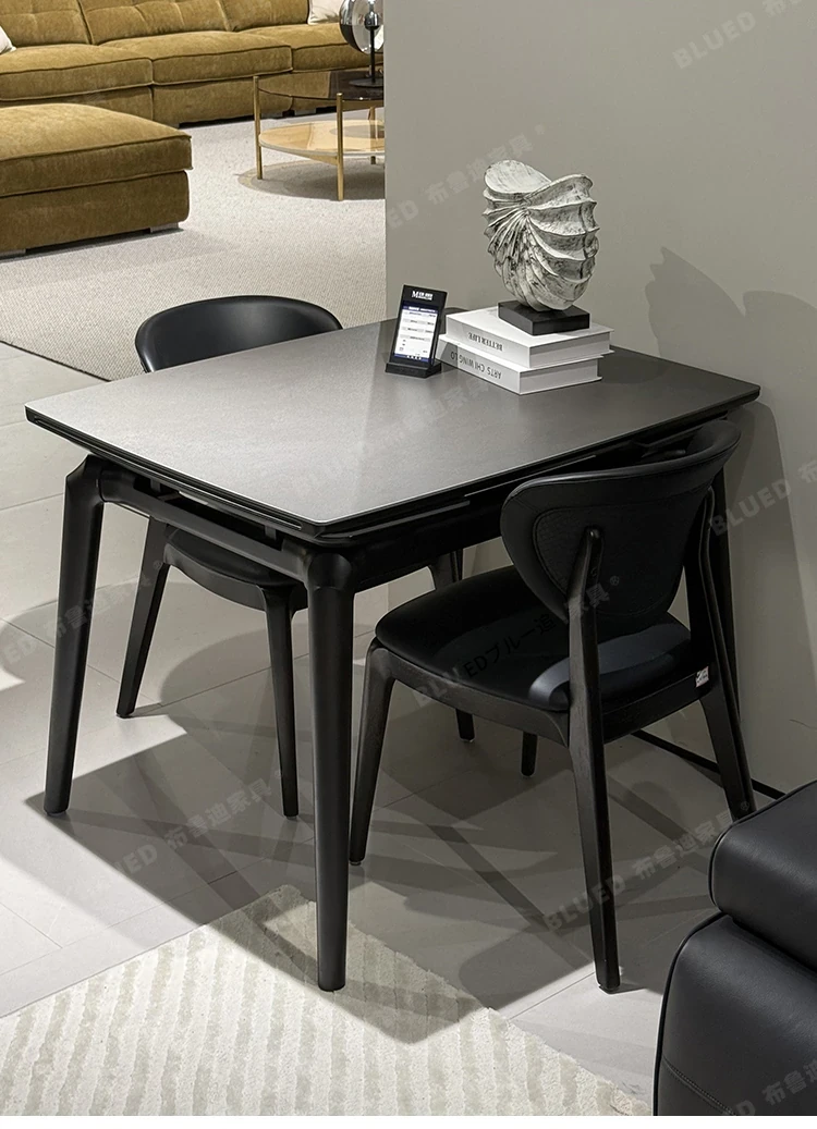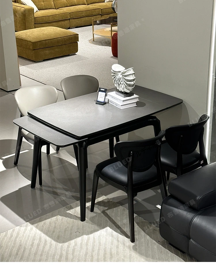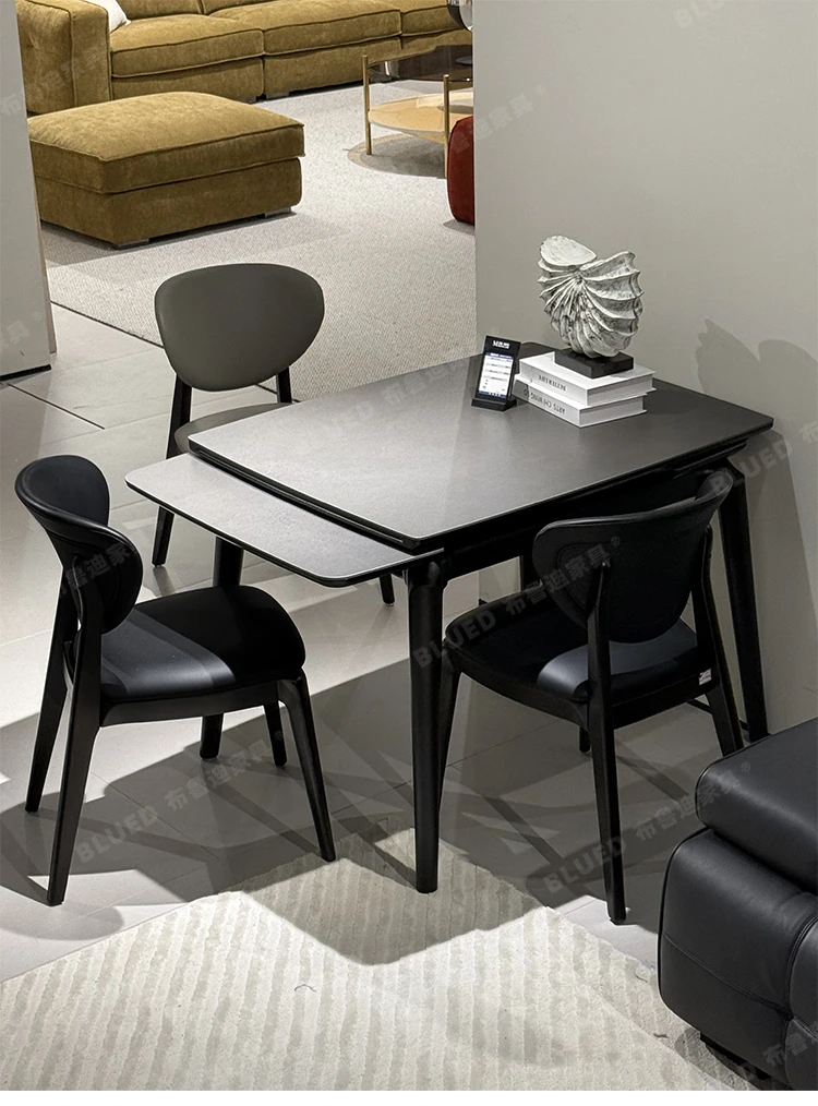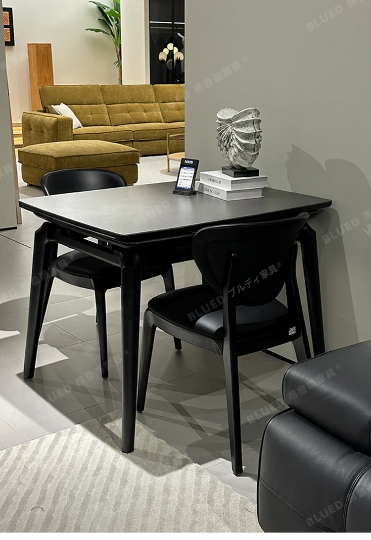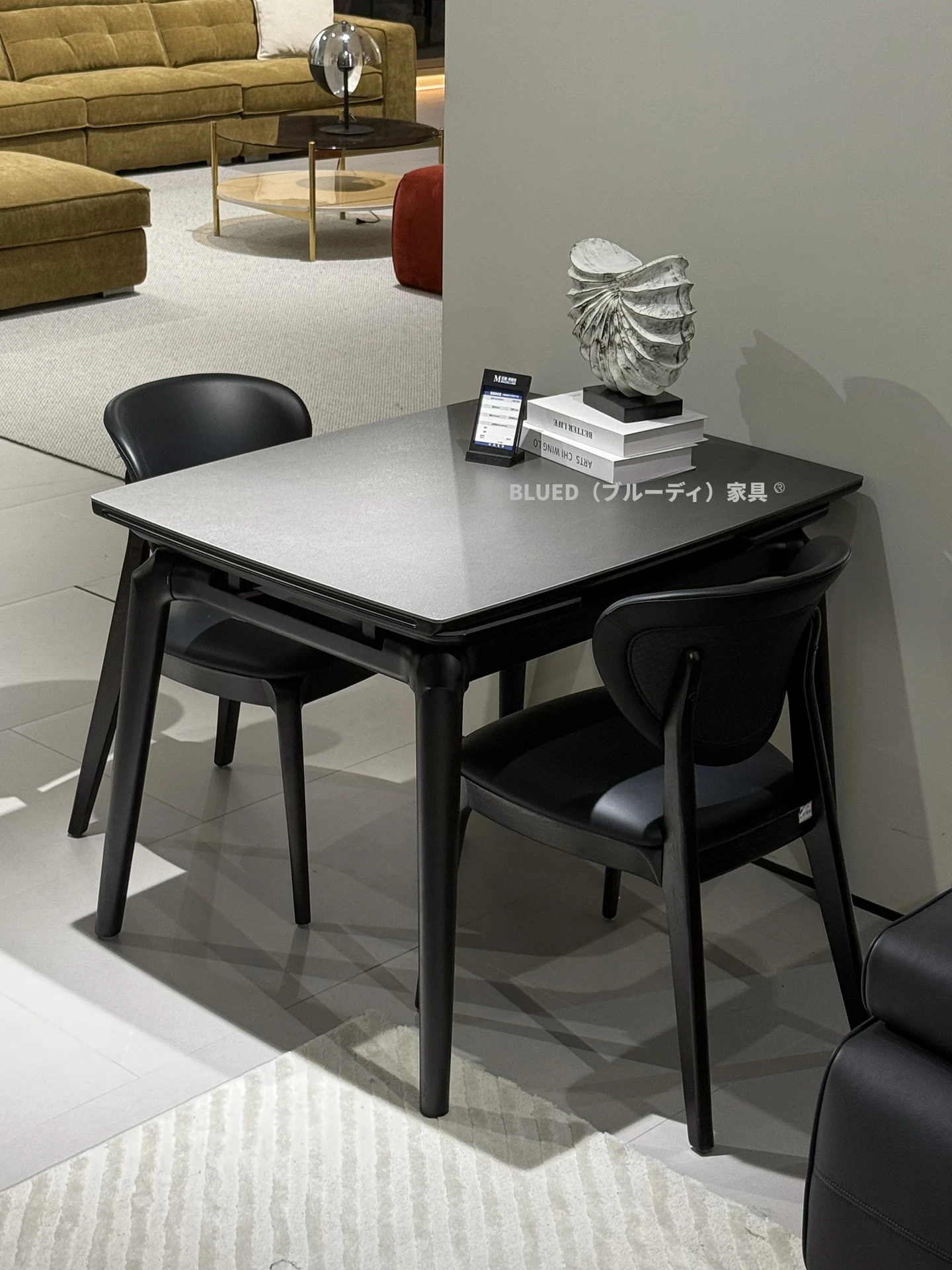 ブルディ折りたたみ伸縮式ダイニングテーブル - 高級感あふれるコンパクトな長方形デザイン、狭いリビングにも最適な無垢材製で、スペースを取らずにスタイリッシュな食事空間を演出します!