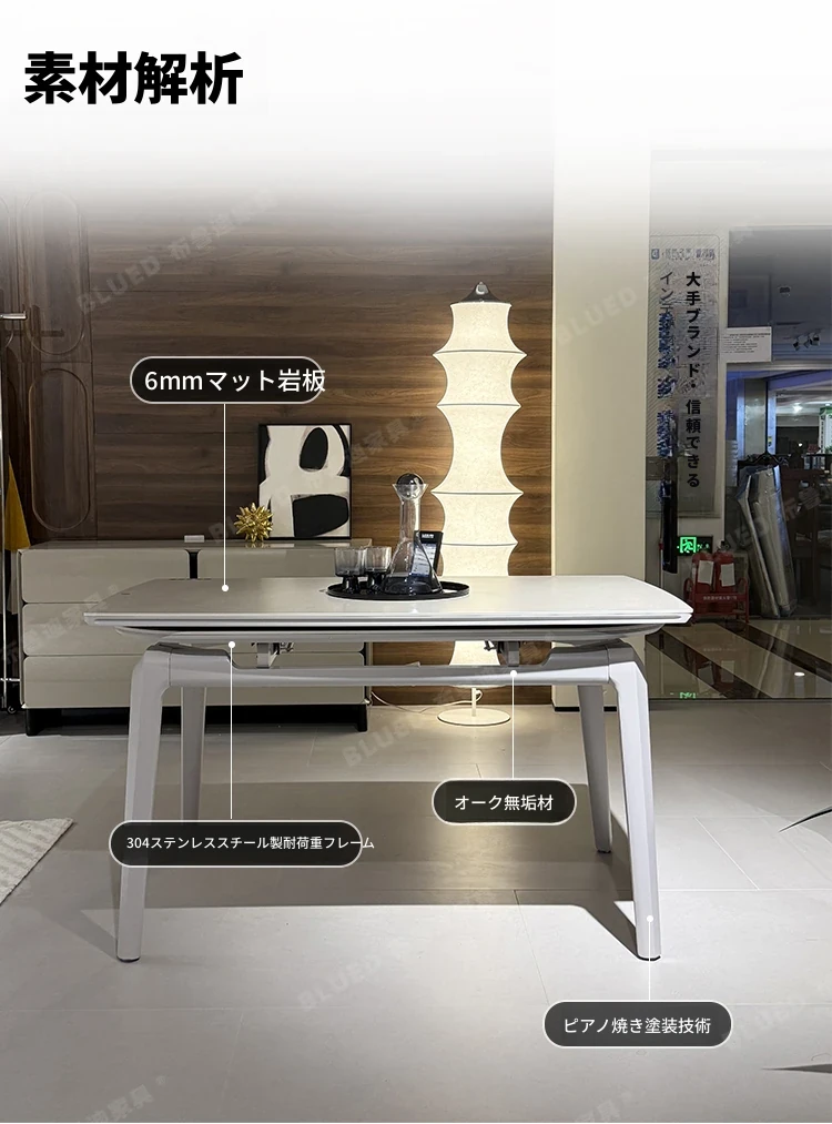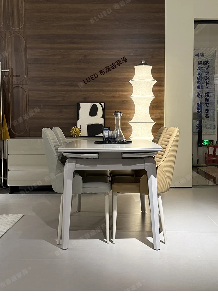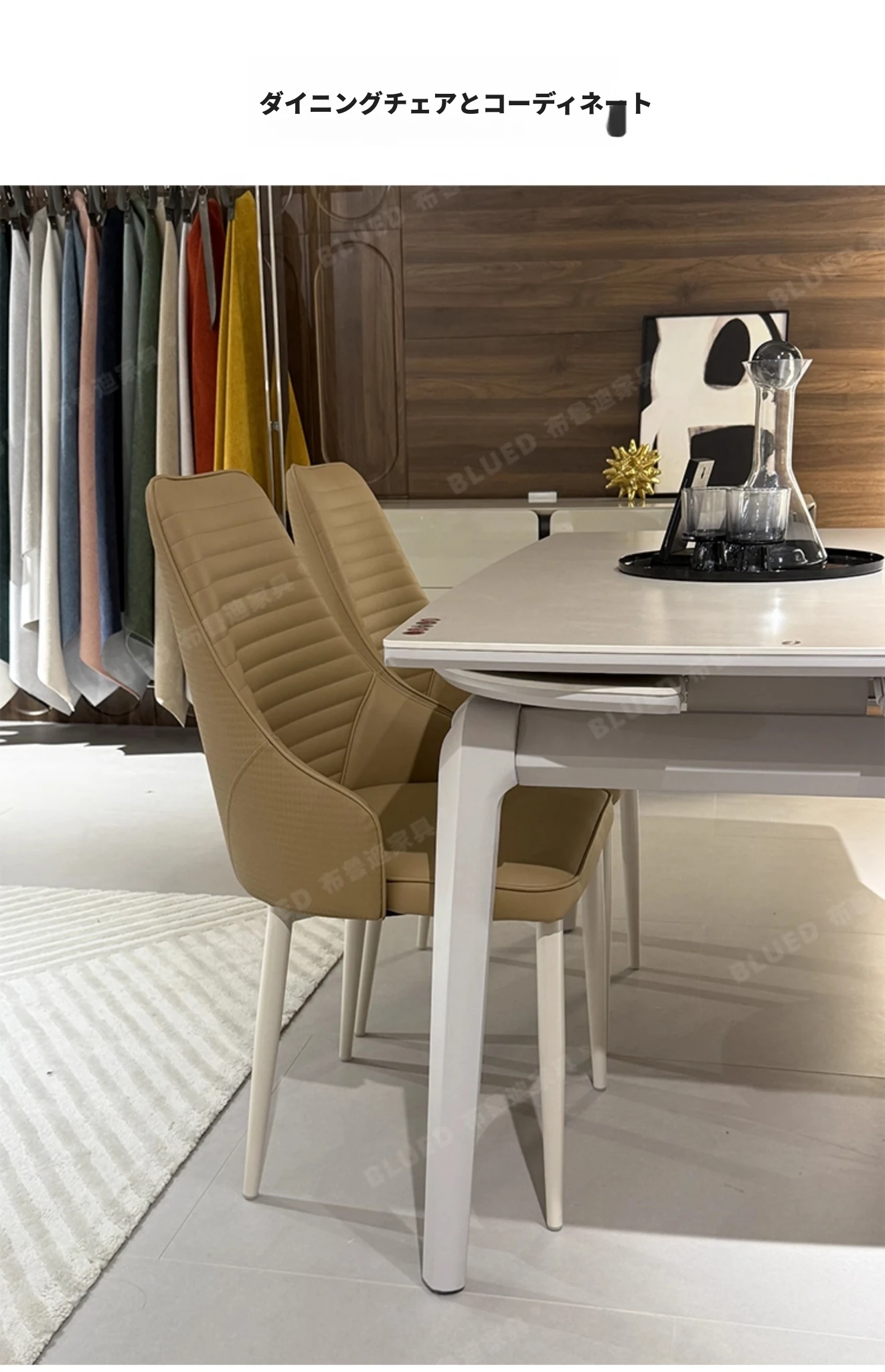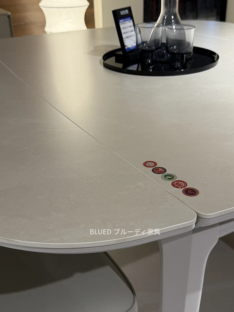 ブリューディクリーム風伸縮式ダイニングテーブル|高級感あふれる小型折りたたみテーブル|現代的でシンプルな白色デザイン|おしゃれで便利なスペース節約!