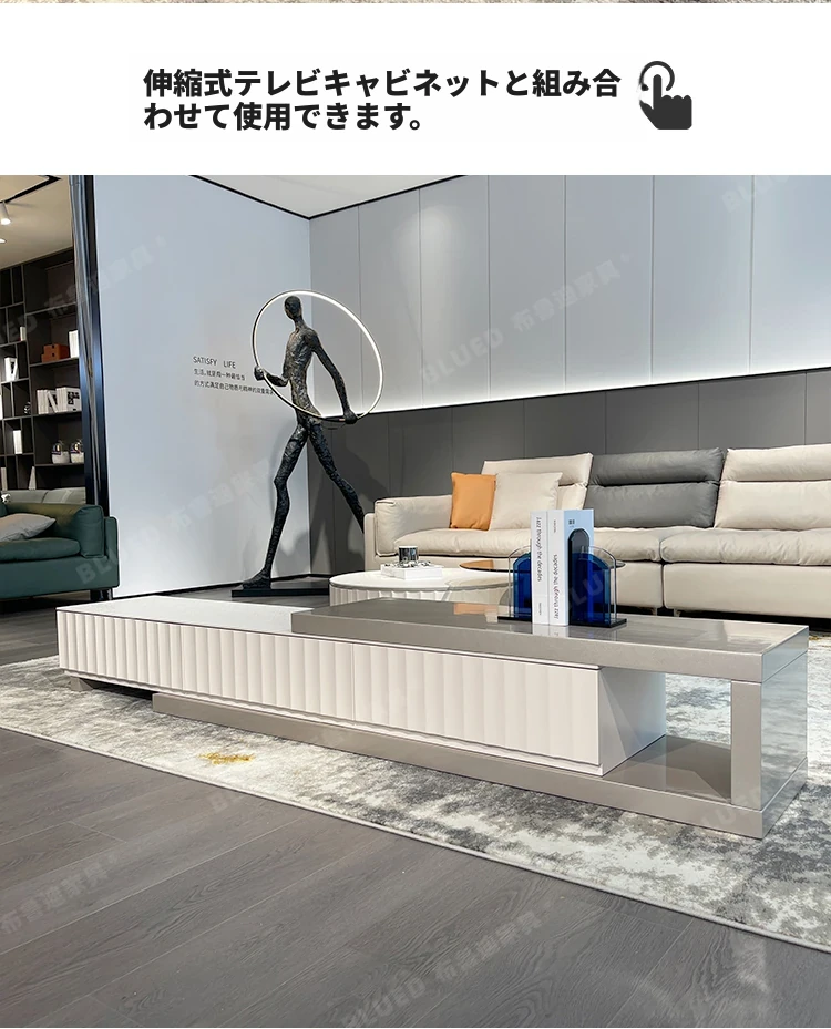 伸縮式単テレビキャビネット+岩板コンビネーションラウンドコーヒーテーブル