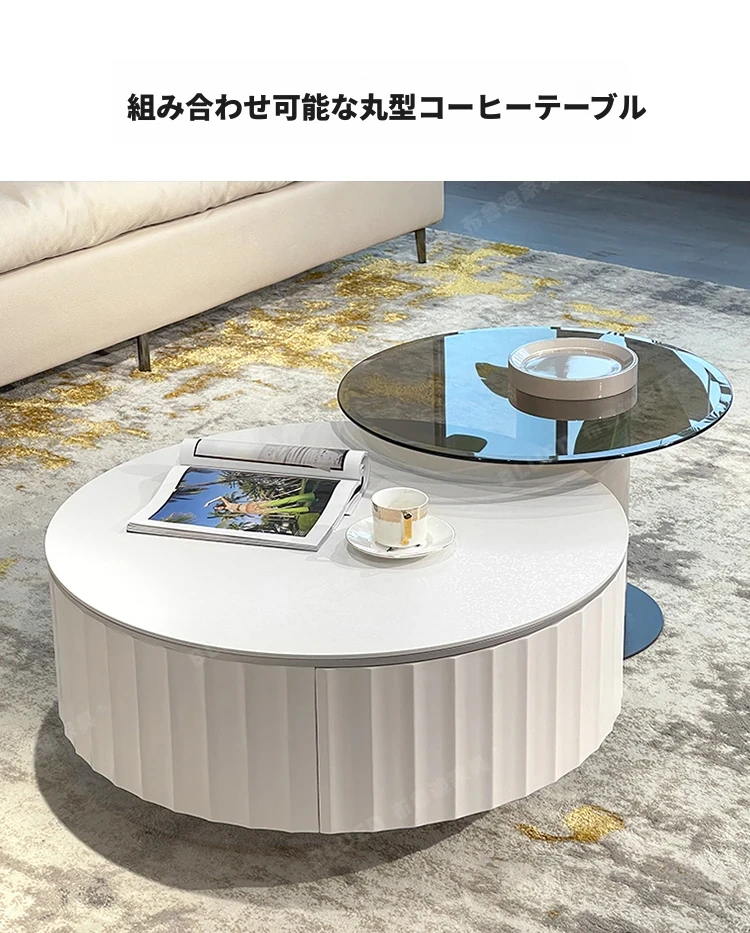 80+60【岩板コンビネーションラウンドコーヒーテーブル】