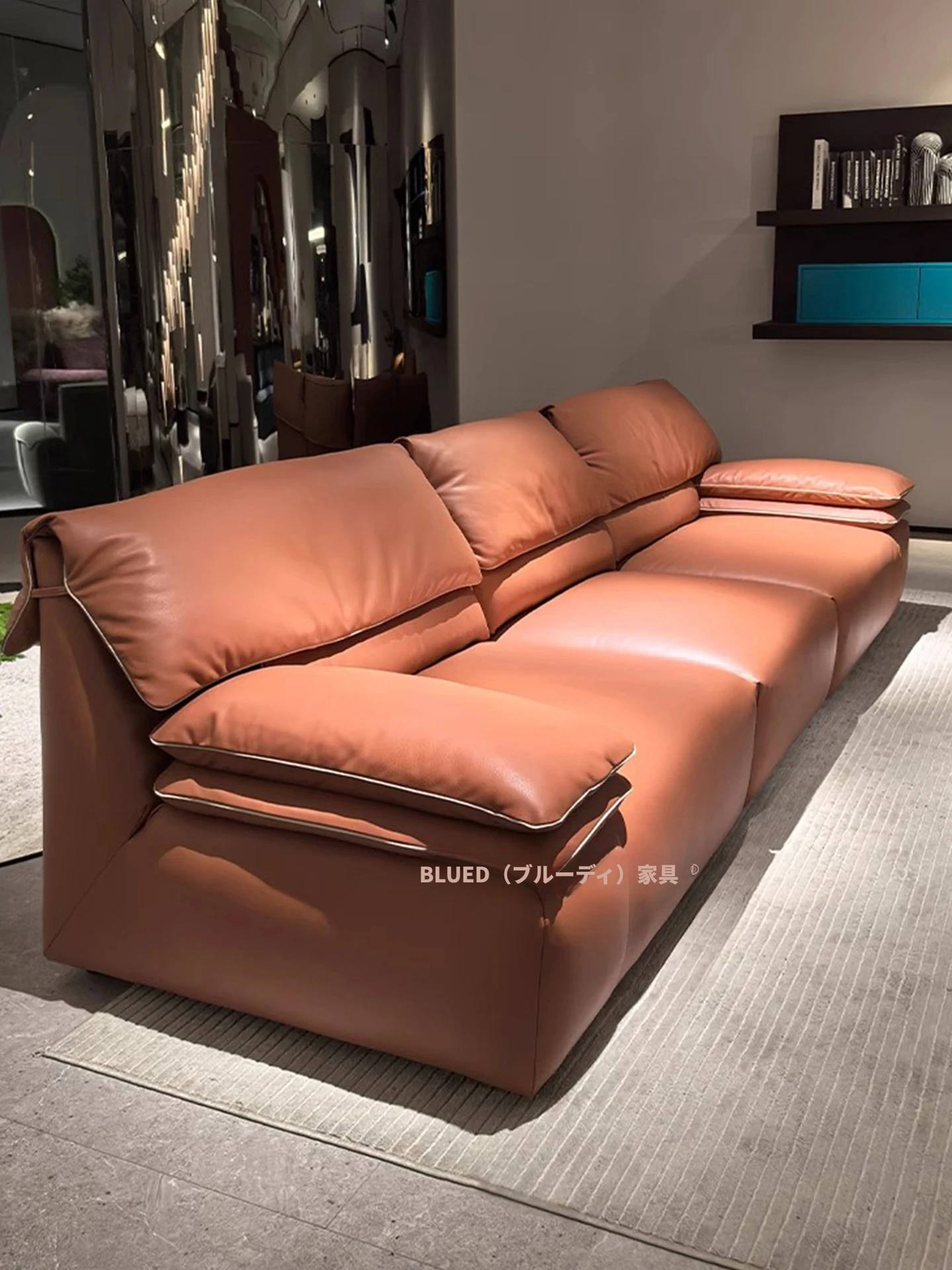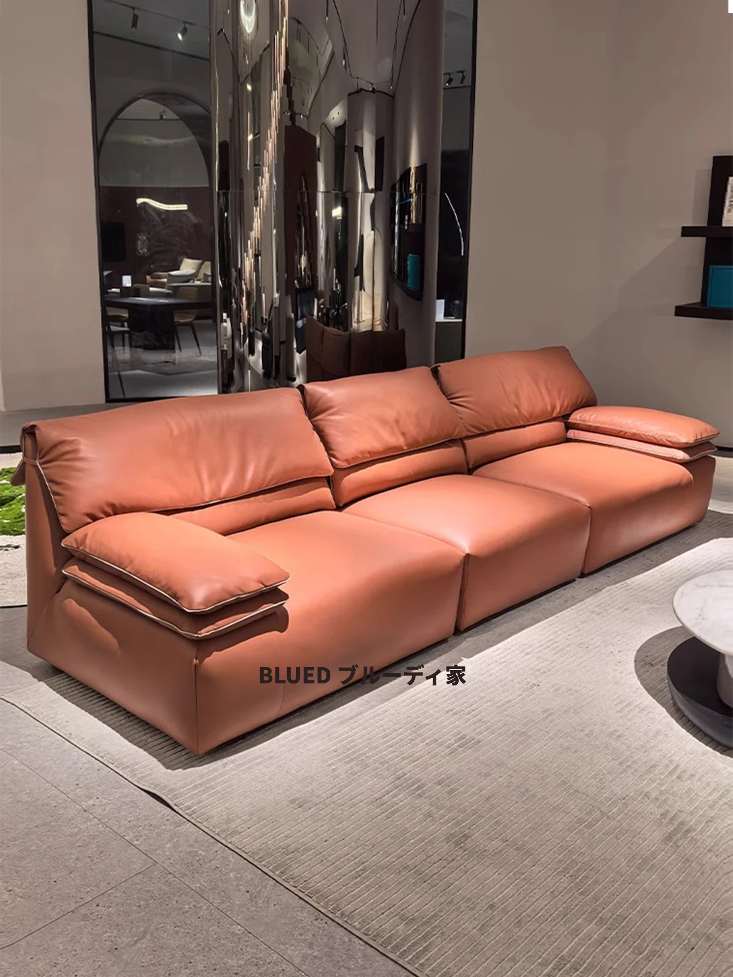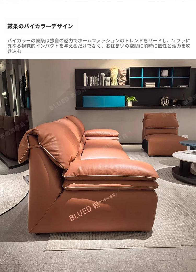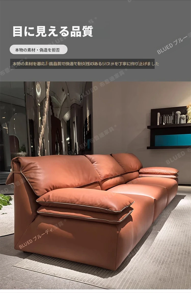 ブルディ小型3人用ソファ 高背もたれ バルセロナスタイル イタリアンミニマルデザイン 本革使用 オンライン・オフライン同商品 おしゃれでコンパクト、どんなインテリアにもぴったり!