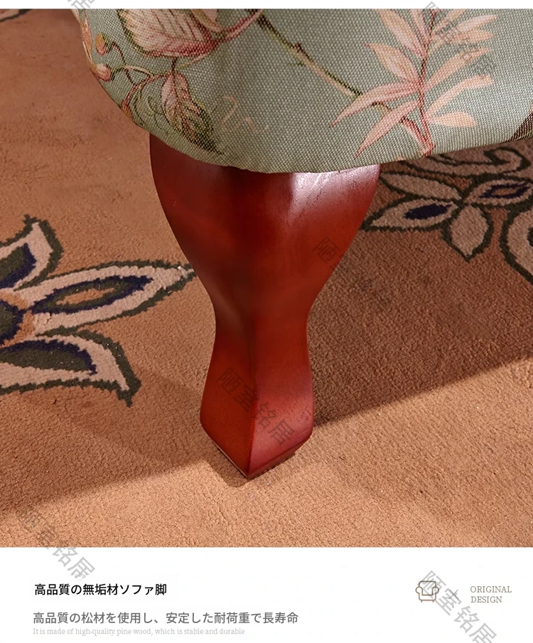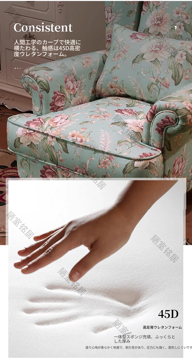 アメリカンカントリー&地中海スタイルの花柄リビング・バルコニー用タッセル付き軽奢コットン麻ソファチェア - おしゃれで心地よい一人掛け椅子で、あなたの空間を優雅に演出!