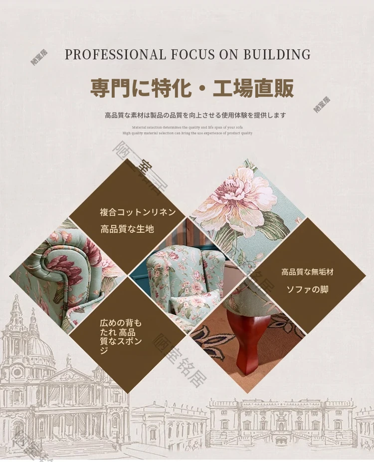 豪華なフレンチスタイル!123U型布張りソファセット - おしゃれな彫刻デザインと実木フレームで、洗濯可能。リビングを華やかに彩る、欧風アメリカンスタイルの快適なソファ。