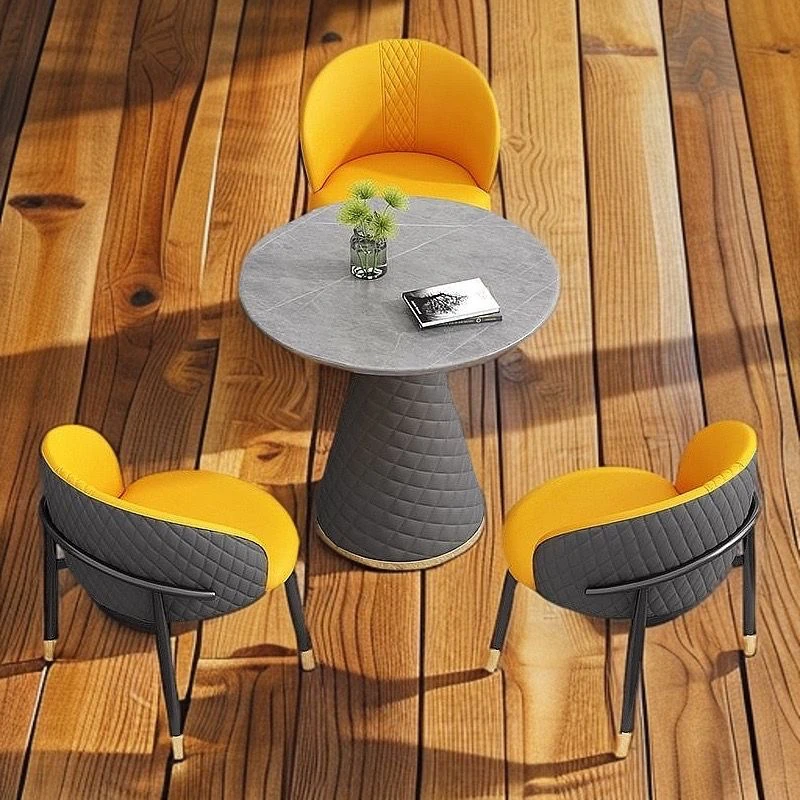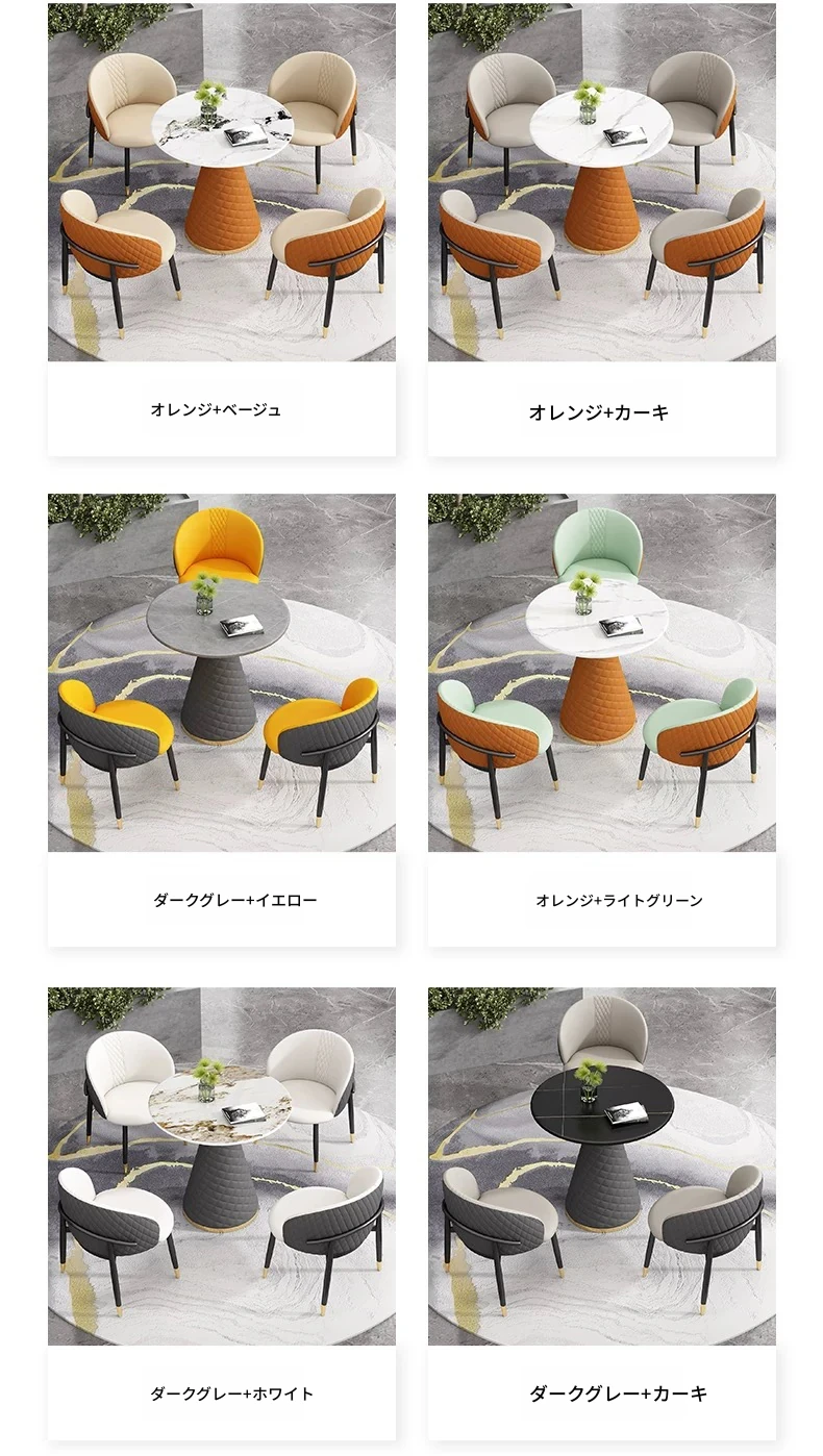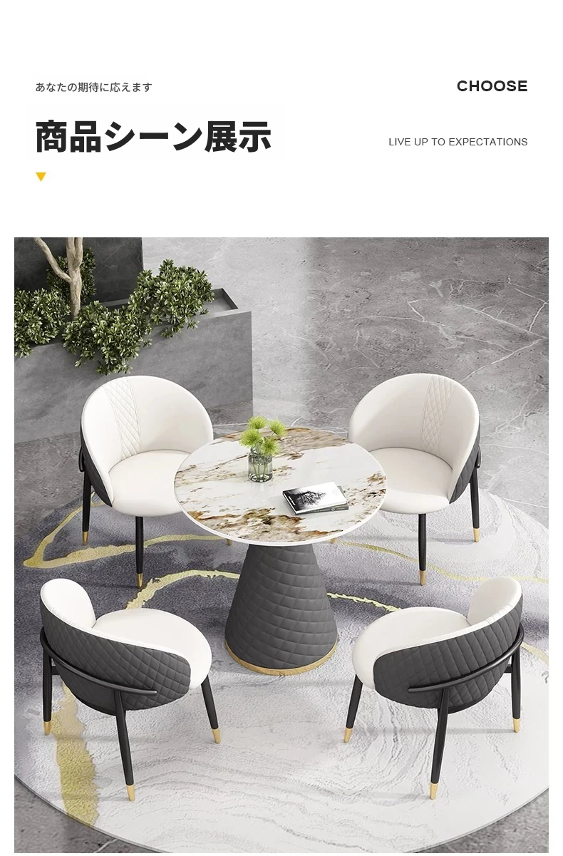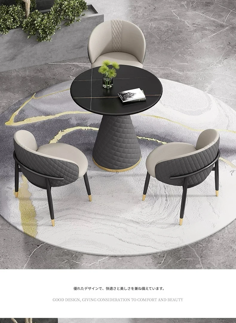 ラグジュアリーな天然石デザインの接客用テーブルセット|カフェやティーショップに最適な休憩エリアを演出|スタイリッシュな小丸テーブルと椅子のコンビネーションで、心地よいひとときを提供します!