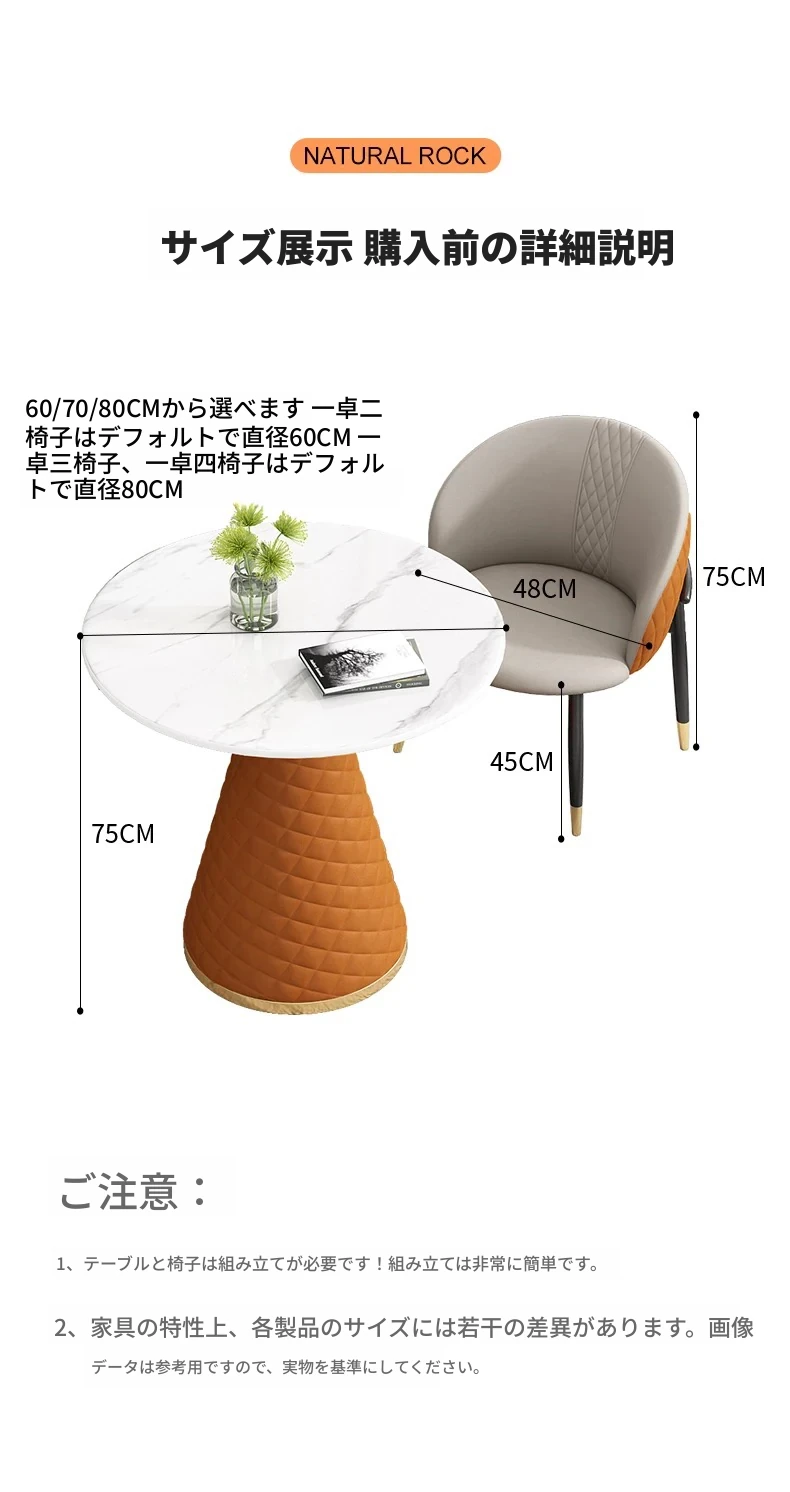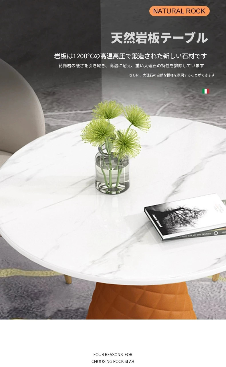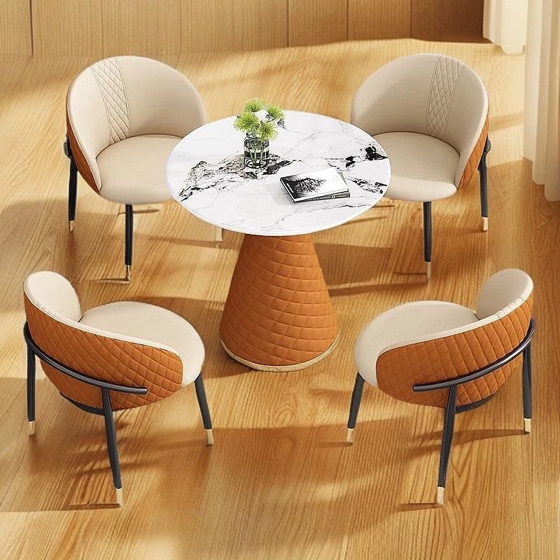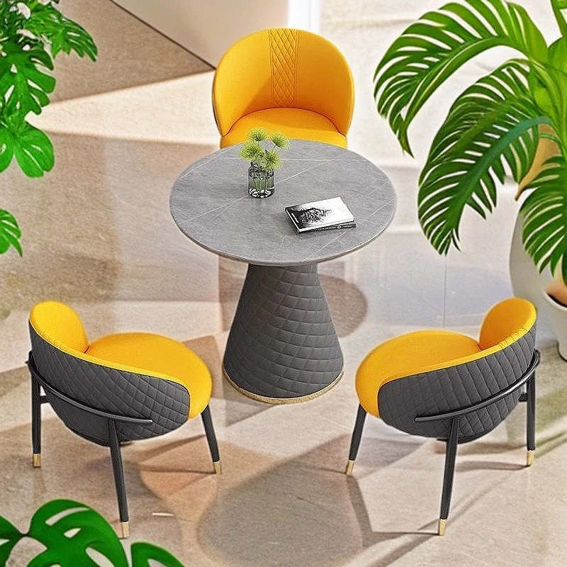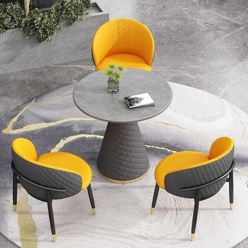 ラグジュアリーな天然石デザインの接客用テーブルセット|カフェやティーショップに最適な休憩エリアを演出|スタイリッシュな小丸テーブルと椅子のコンビネーションで、心地よいひとときを提供します!