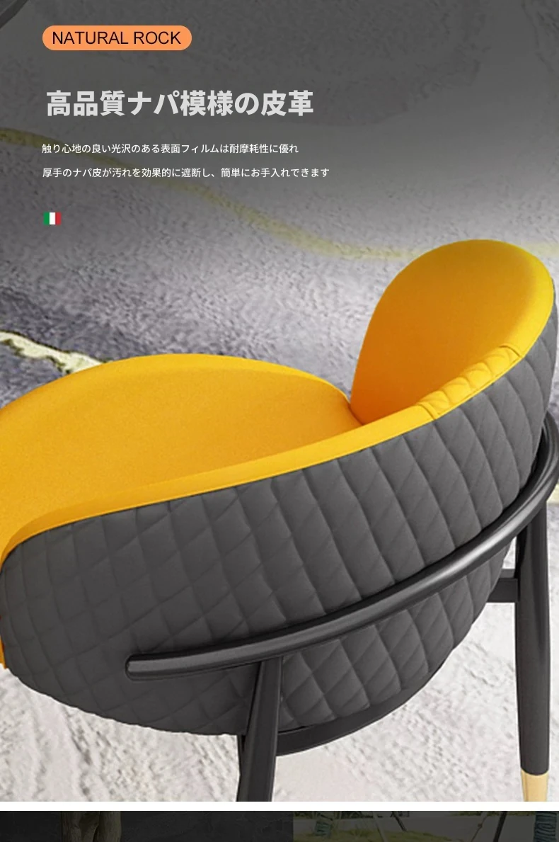 グレーとイエローの80センチ岩板テーブルと4脚の椅子