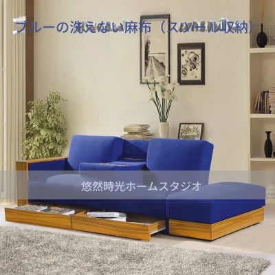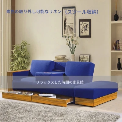 ブルーの取り外し可能な麻布(フットスツール収納)