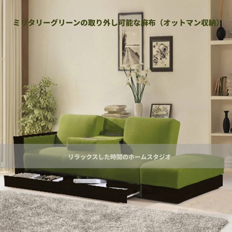 ミリタリーグリーンの取り外し可能な麻布(フットスツール収納)