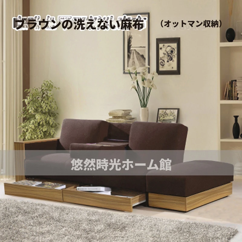 コーヒー色の取り外し可能な麻布(フットスツール収納)