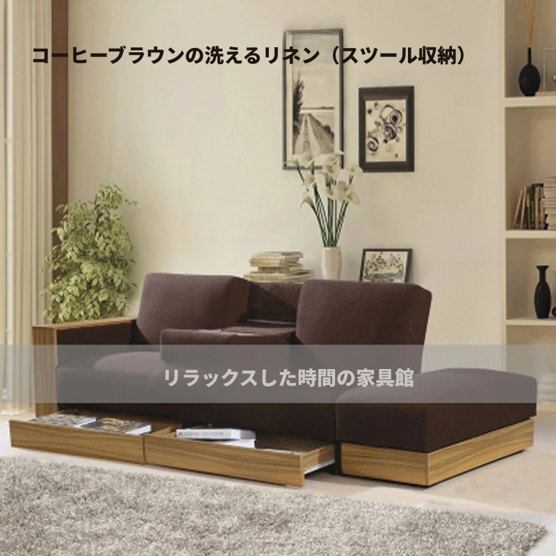 コーヒーブラウンのコットンリネン生地(フットスツール収納)