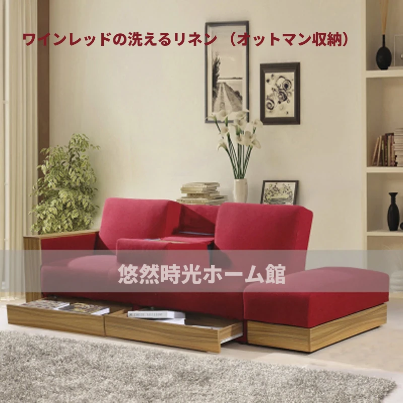 ワインレッドの取り外し可能な麻布(フットスツール収納)