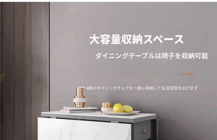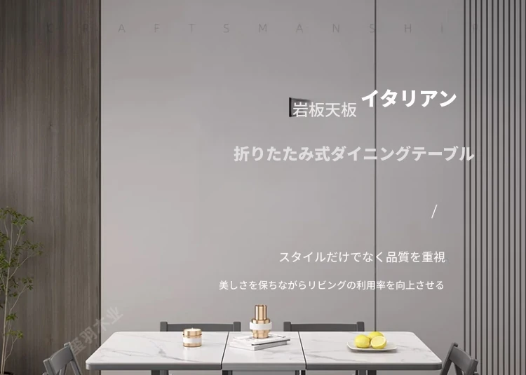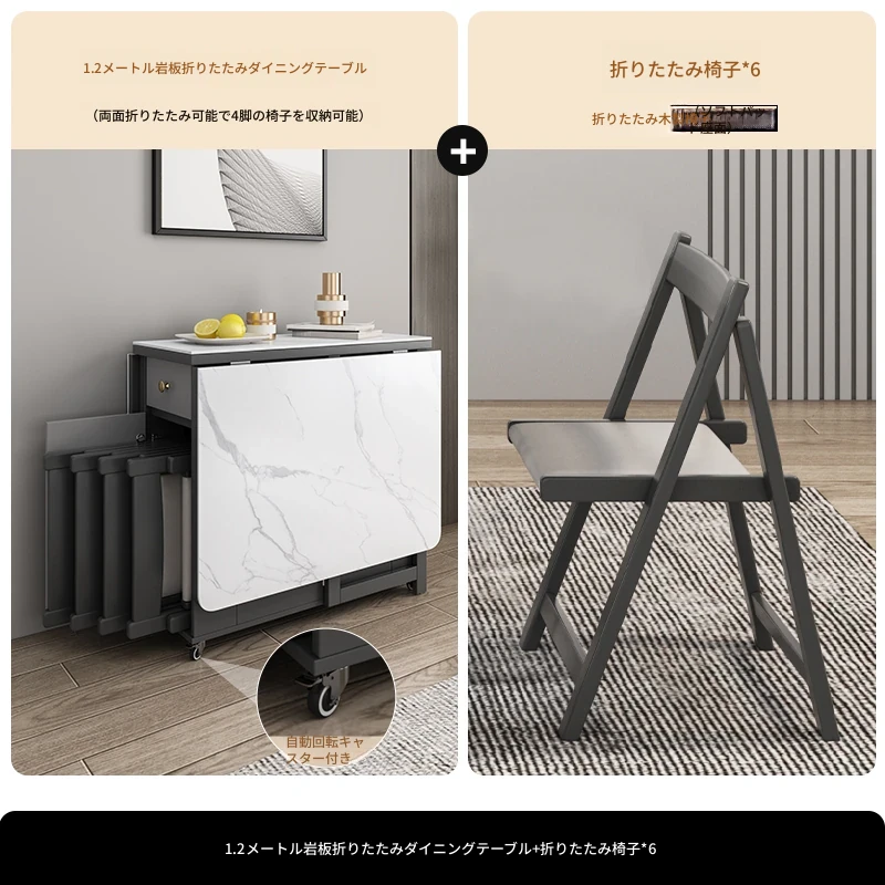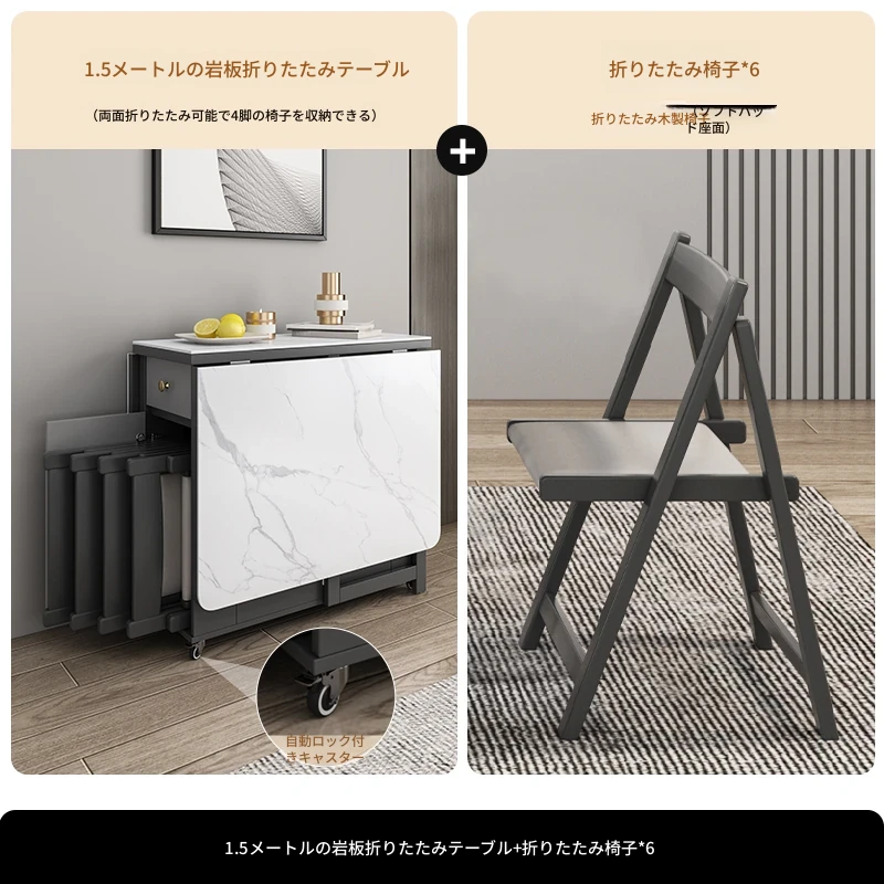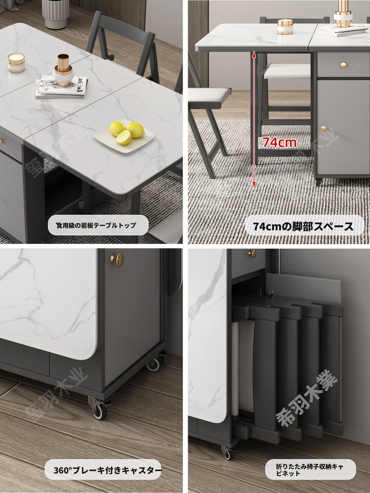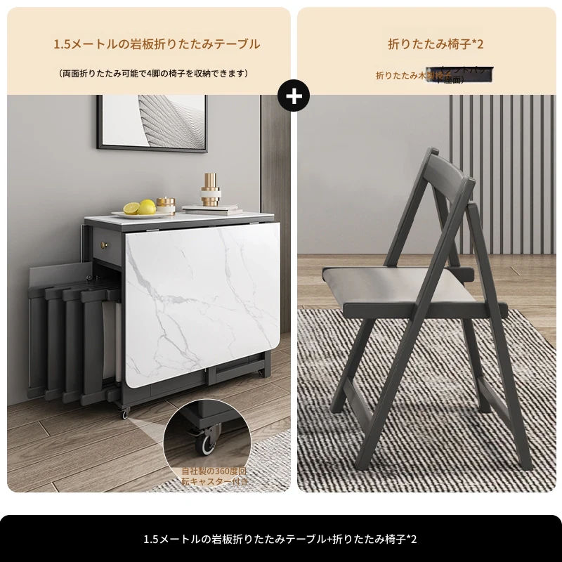省スペース!折りたたみ式の岩板伸縮ダイニングテーブルセット - 小型住宅に最適!壁寄せ収納可能、移動もラクラク、食事を楽しくする長方形テーブル。