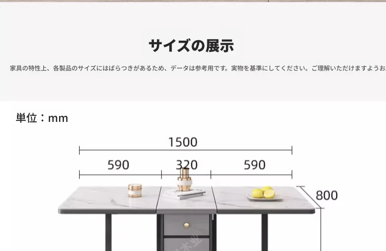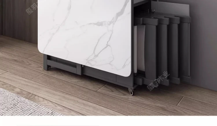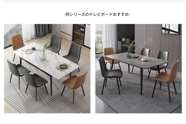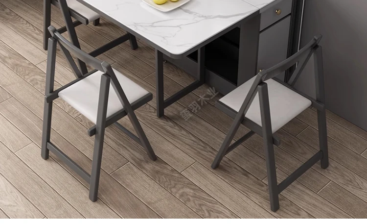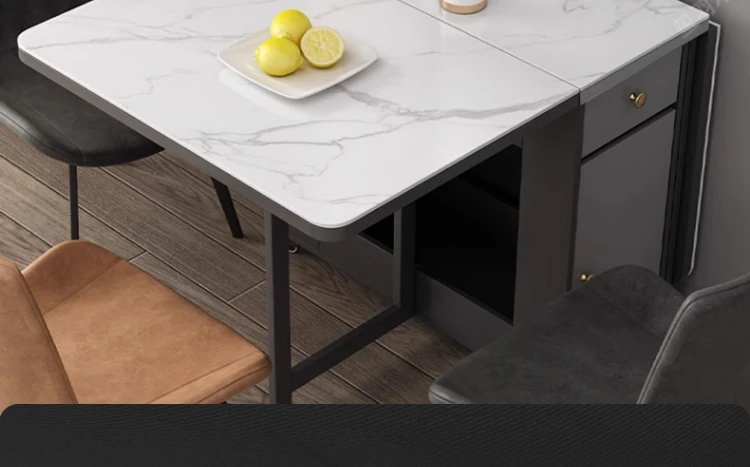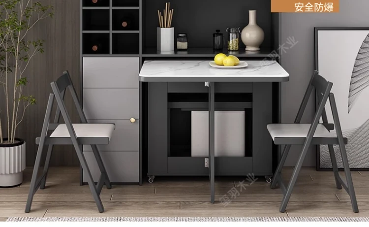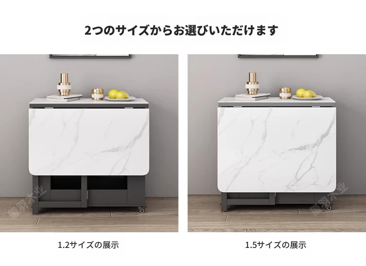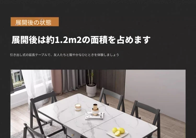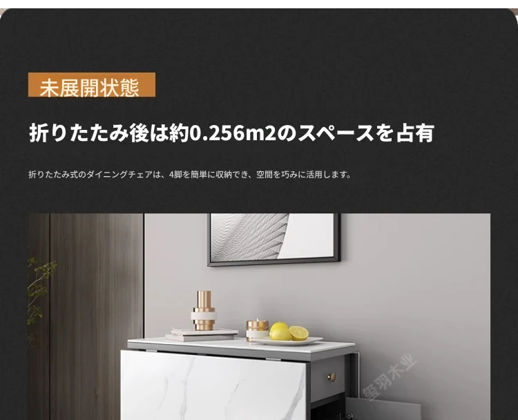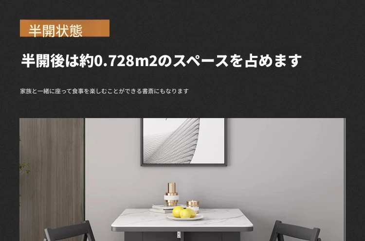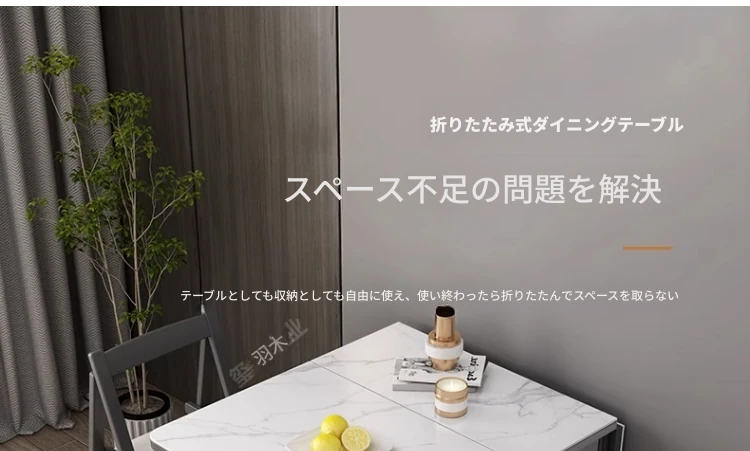 省スペース!折りたたみ式の岩板伸縮ダイニングテーブルセット - 小型住宅に最適!壁寄せ収納可能、移動もラクラク、食事を楽しくする長方形テーブル。
