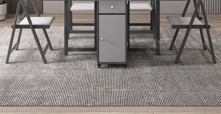 即享シリーズ-組み立て不要の折りたたみテーブル-小スペース-150cm紳士グレー >>4脚のダイニングチェアを収納可能