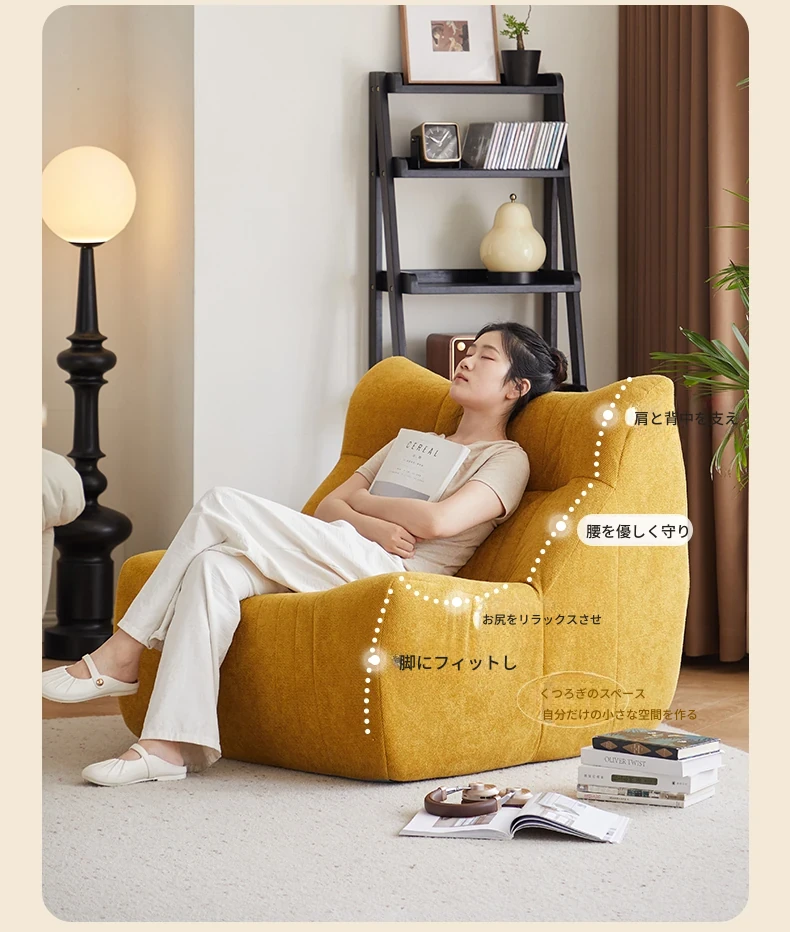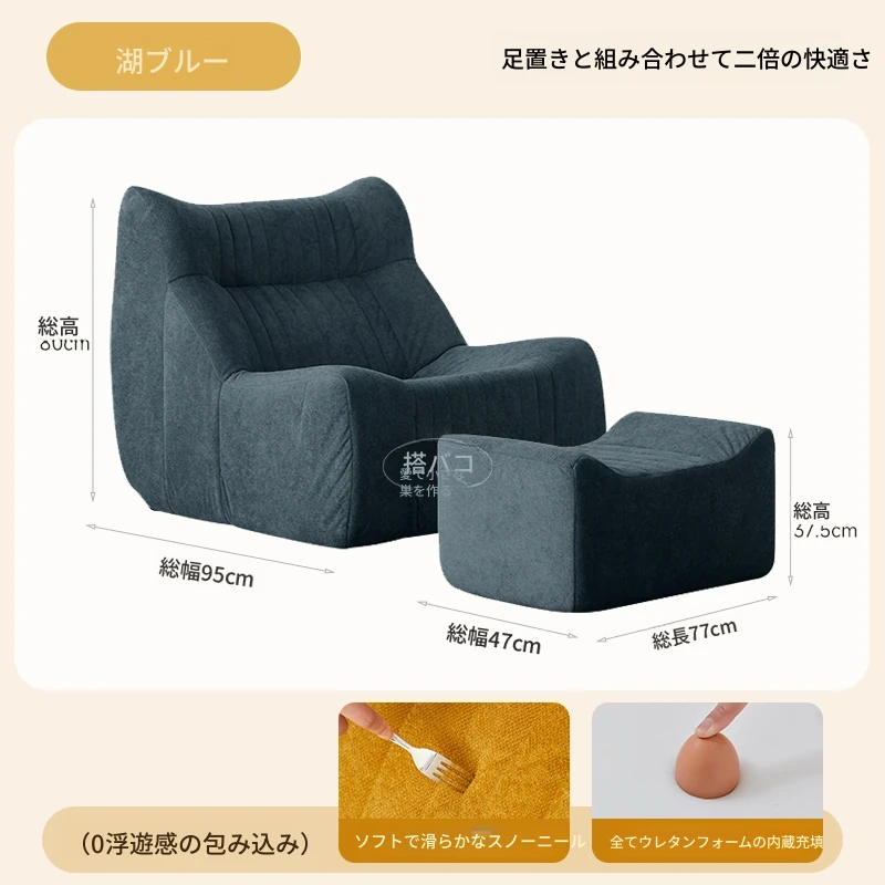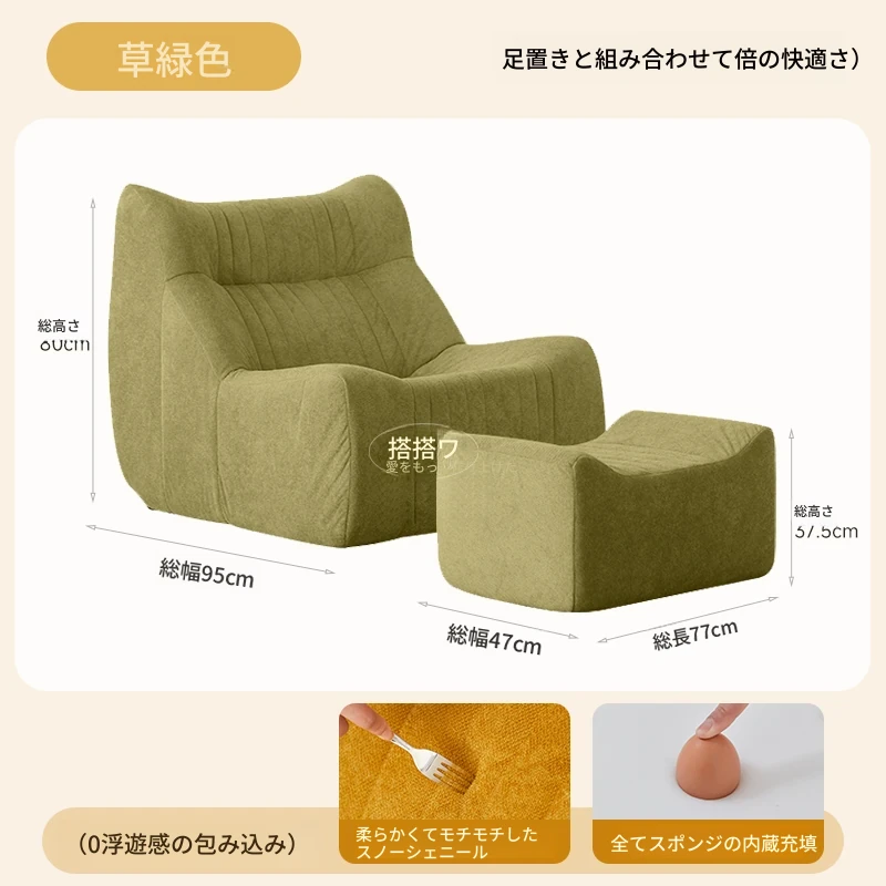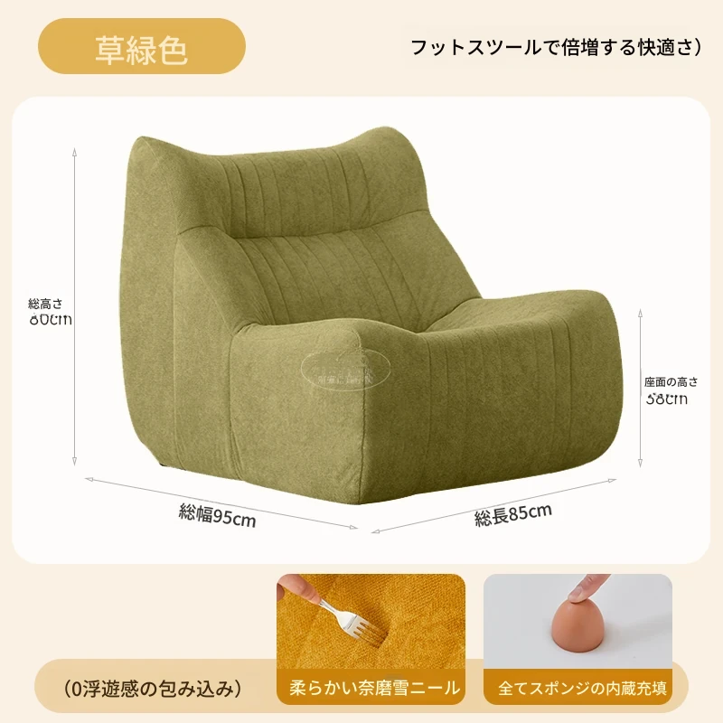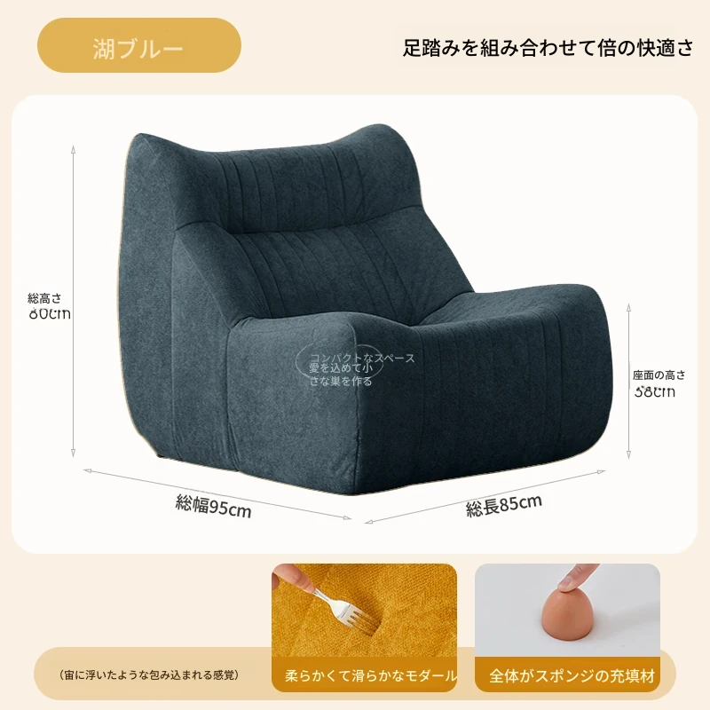 リラックスできる懒人ソファ|家庭用・リビング・バルコニーに最適な一人用リクライニングチェア|寝転びながらくつろげる!省スペース設計で小さいお部屋にもピッタリ!