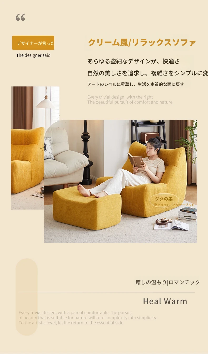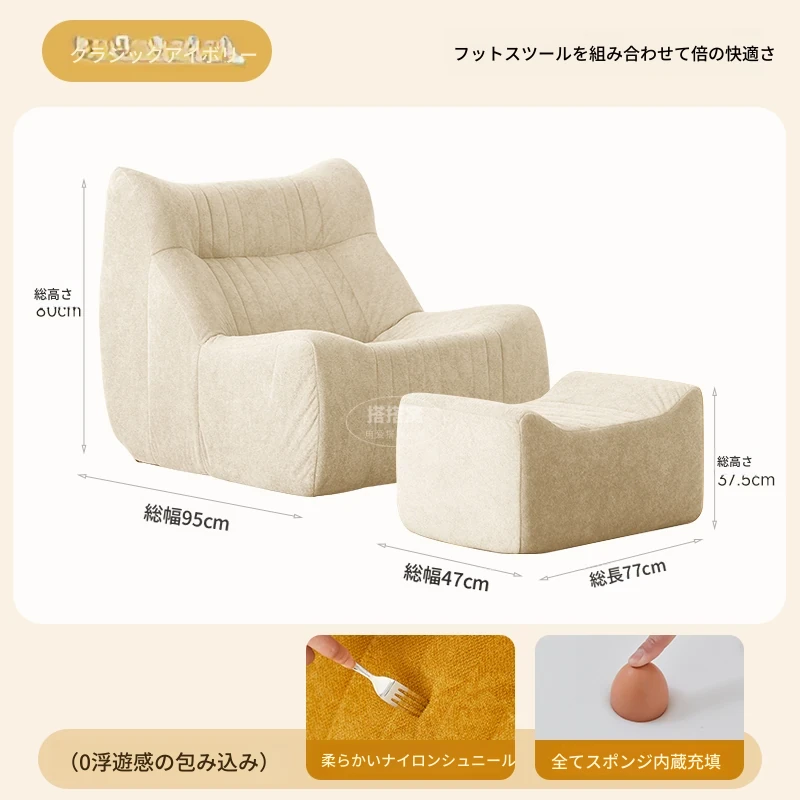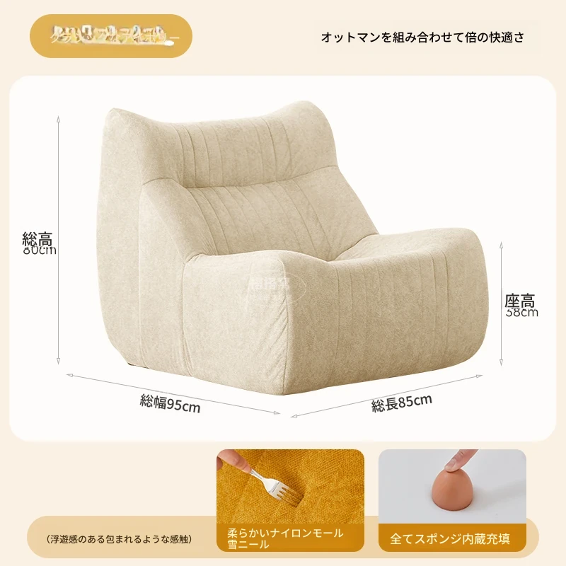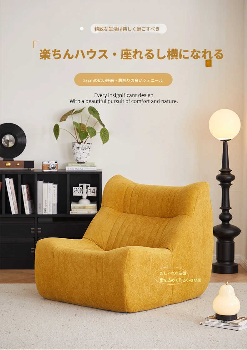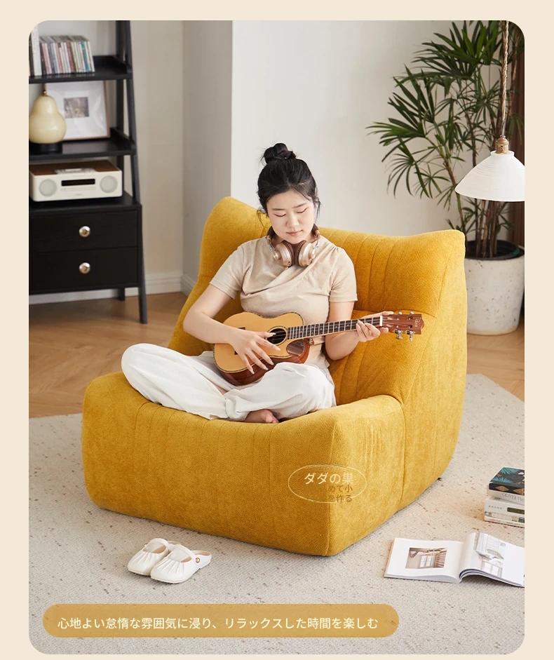 リラックスできる懒人ソファ|家庭用・リビング・バルコニーに最適な一人用リクライニングチェア|寝転びながらくつろげる!省スペース設計で小さいお部屋にもピッタリ!