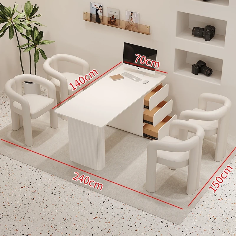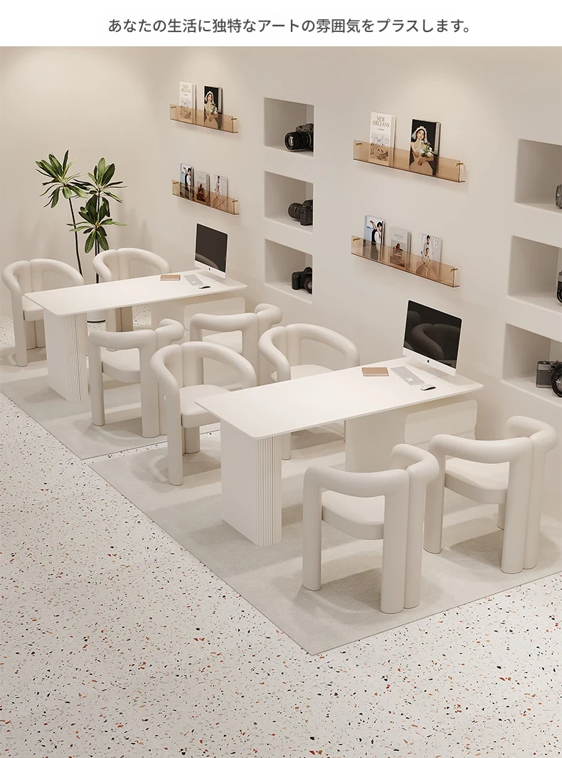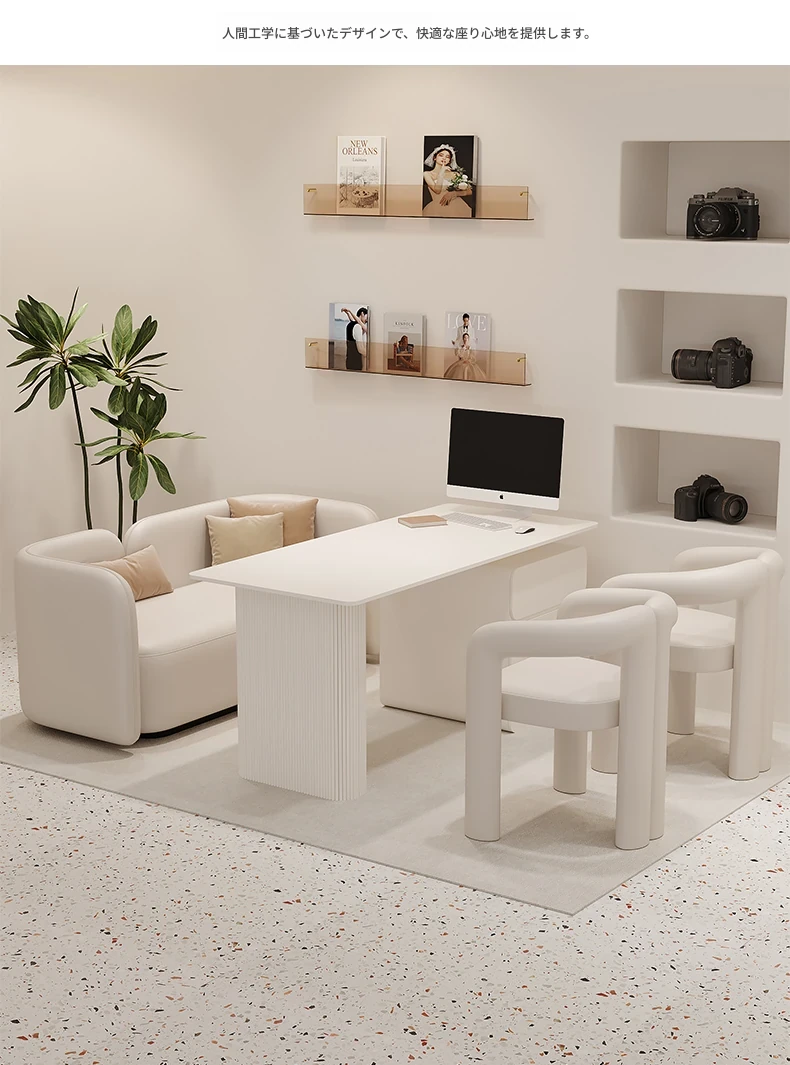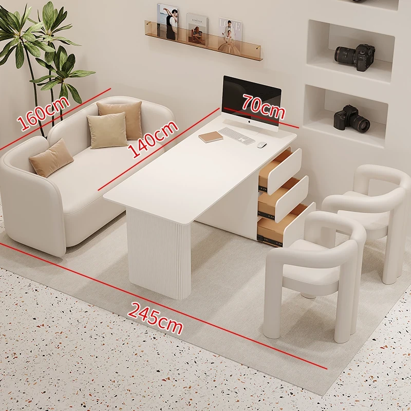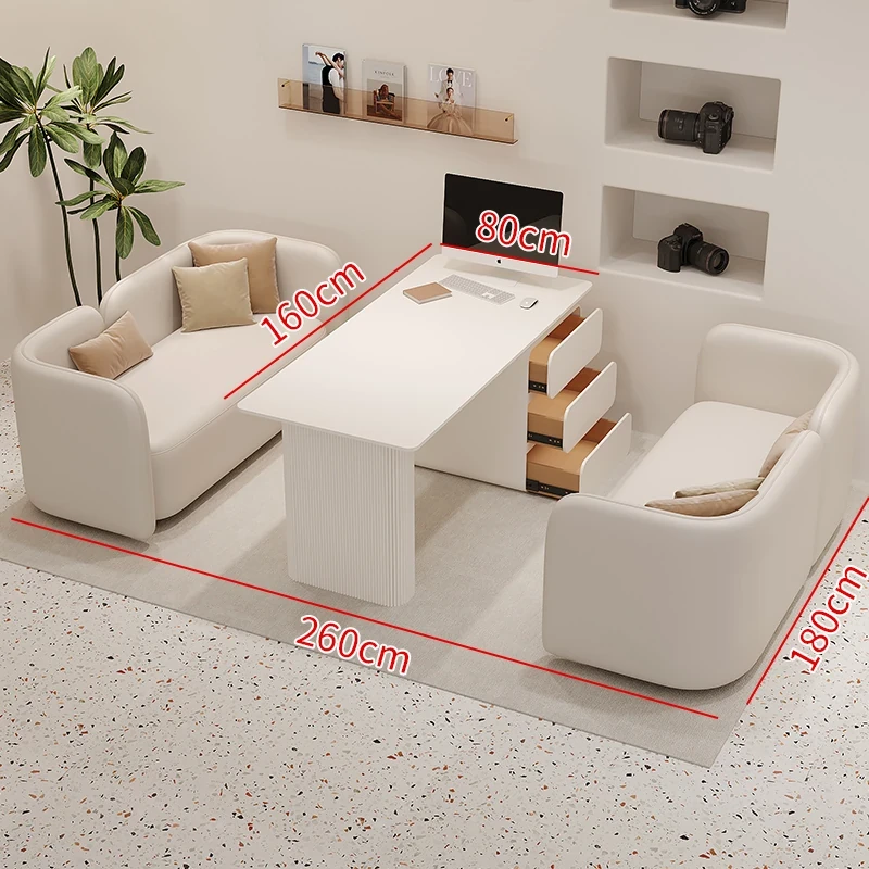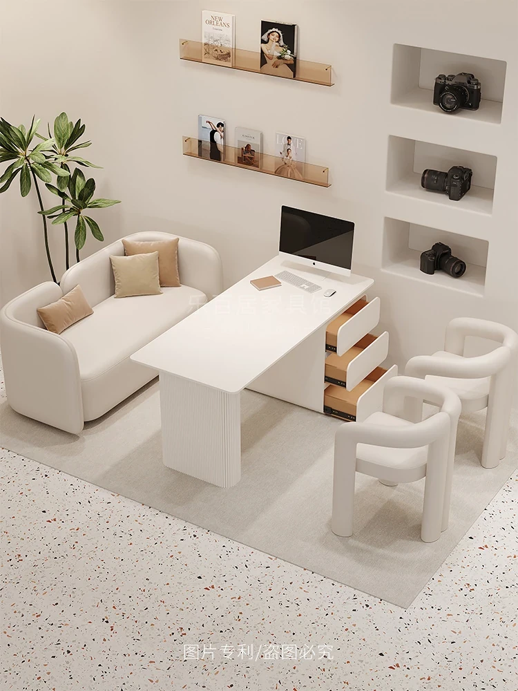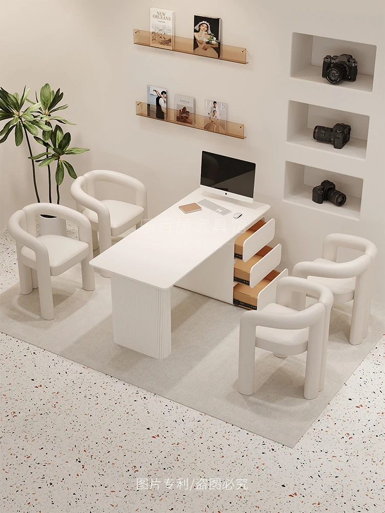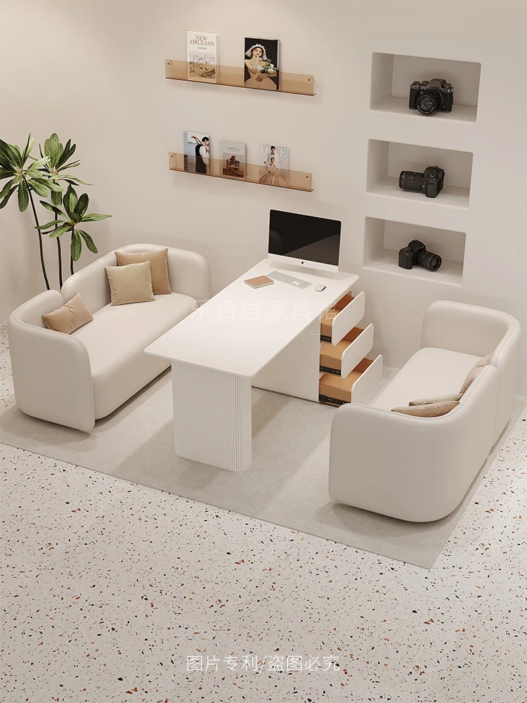 クリーム風のウェディングドレス店専用、美容院に最適な談話テーブル&椅子セット!引き出し付きで便利なリラックススペース、接客エリアにぴったりのソファブース!おしゃれで快適な空間を演出します。