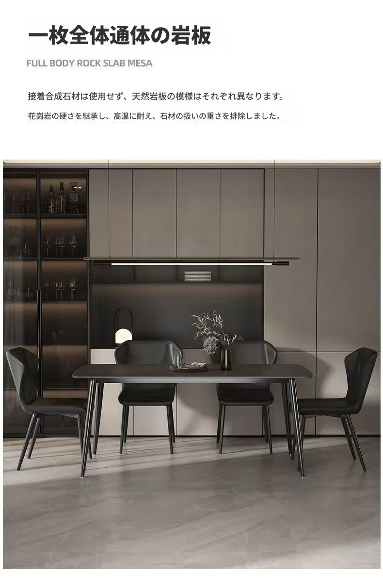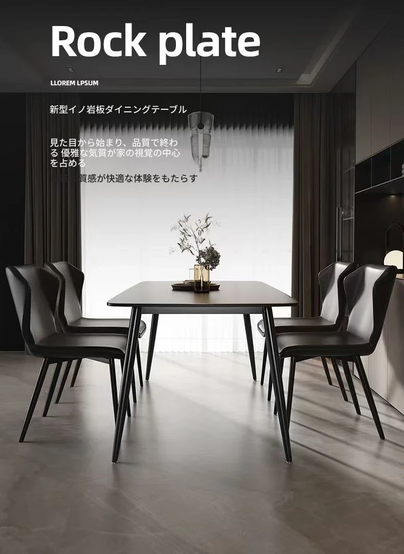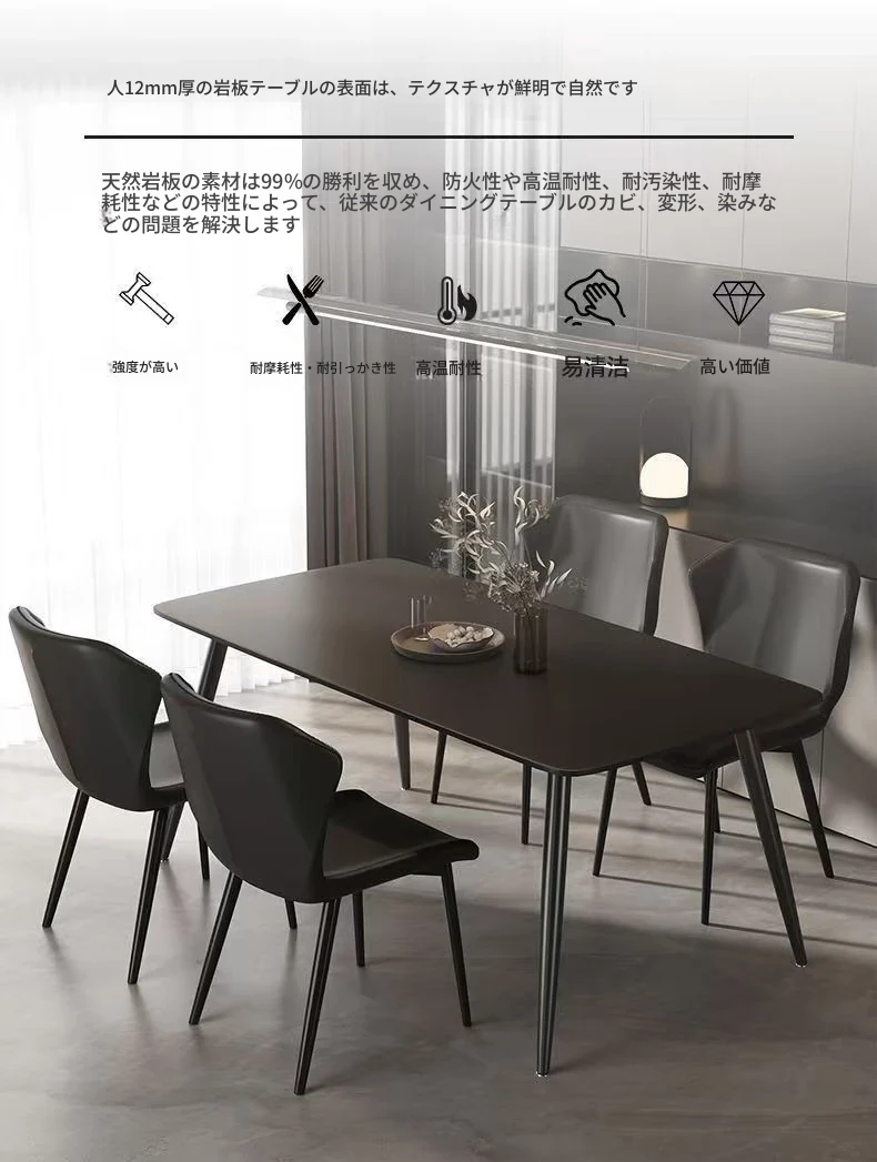 ブラックスラブダイニングテーブルセット - イタリアンミニマルデザイン、現代的でシンプル、小型スペースにぴったりな長方形ダイニングテーブルで、快適な食事体験をお楽しみください!