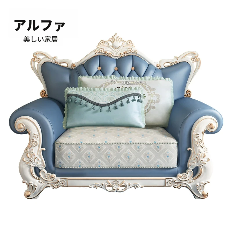 エコノミー版:ロイヤルブルー/超合成皮革+プリント生地+独立スプリングパック+標準内枠