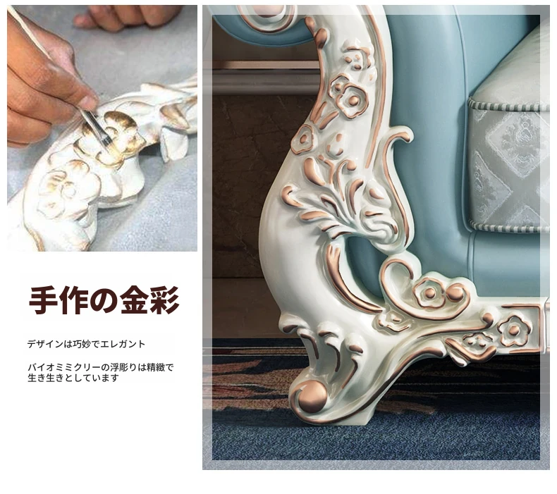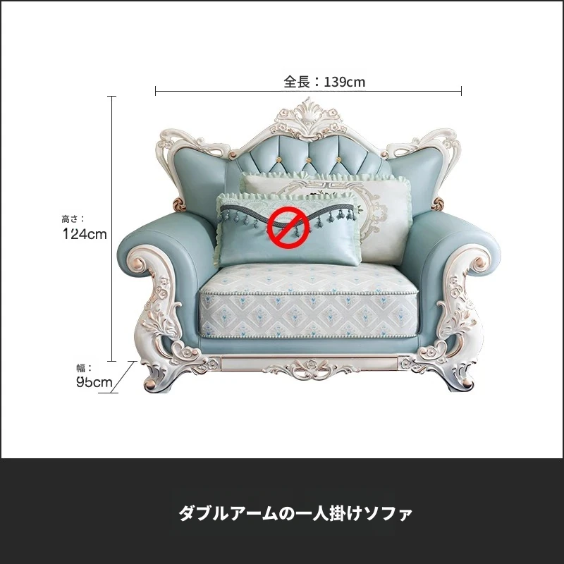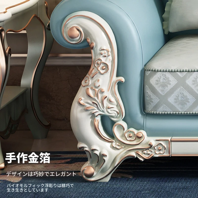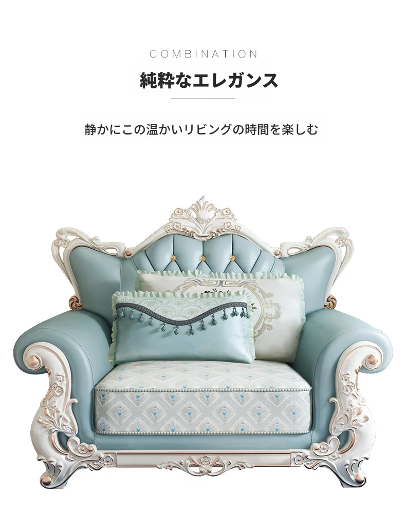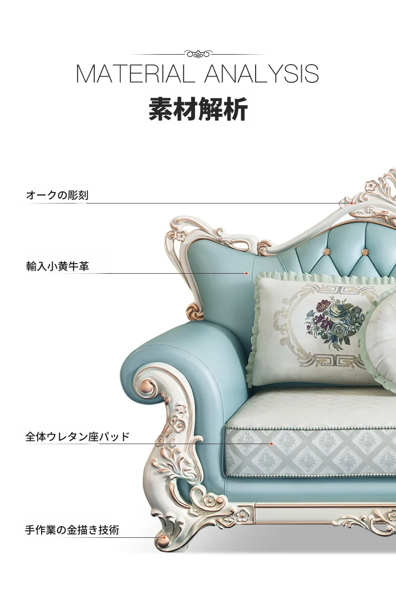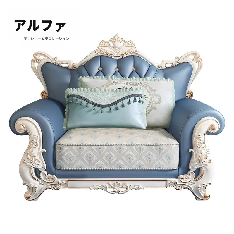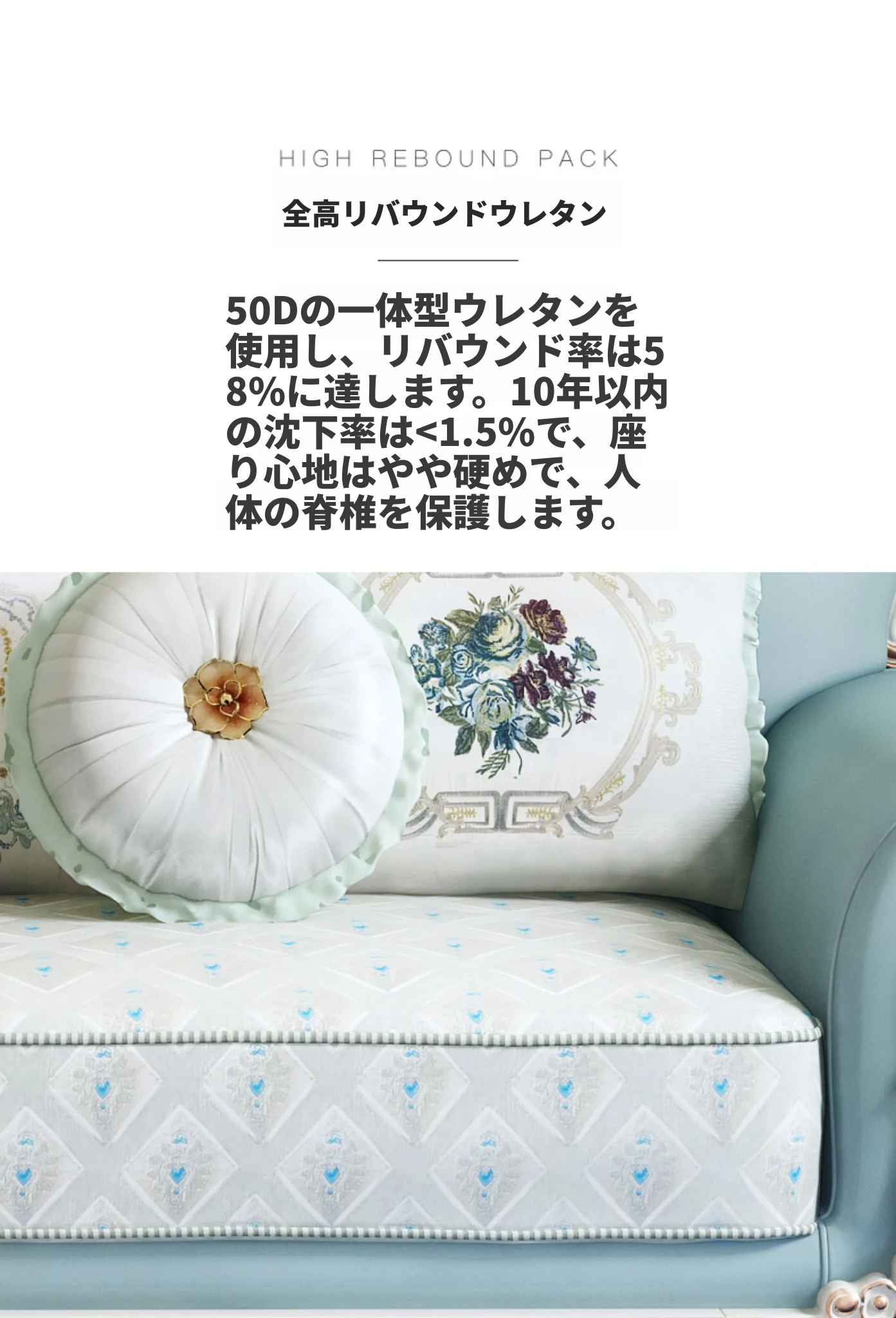 ラグジュアリー版:天ブルー/本革+座面洗浄不要生地+独立スプリングパック+松材内枠