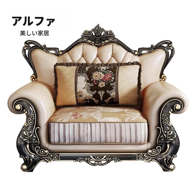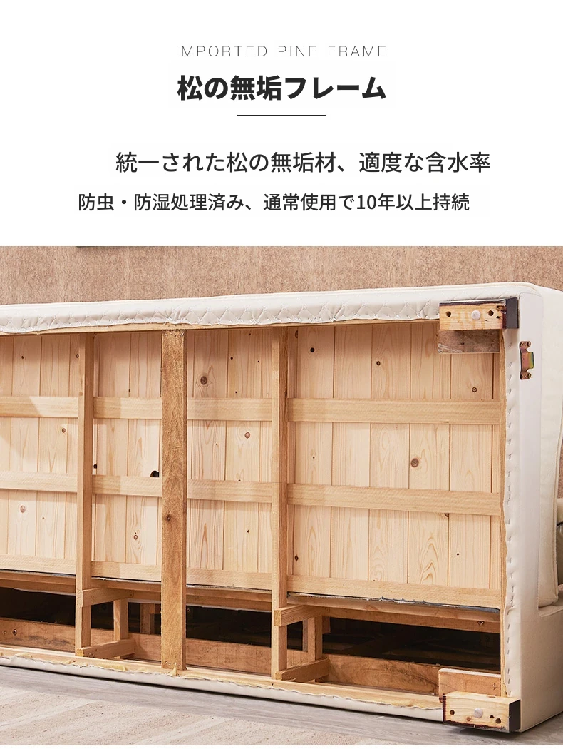 ラグジュアリー版:シャンパン色/本革+座面洗浄不要生地+独立スプリングパック+松材内枠