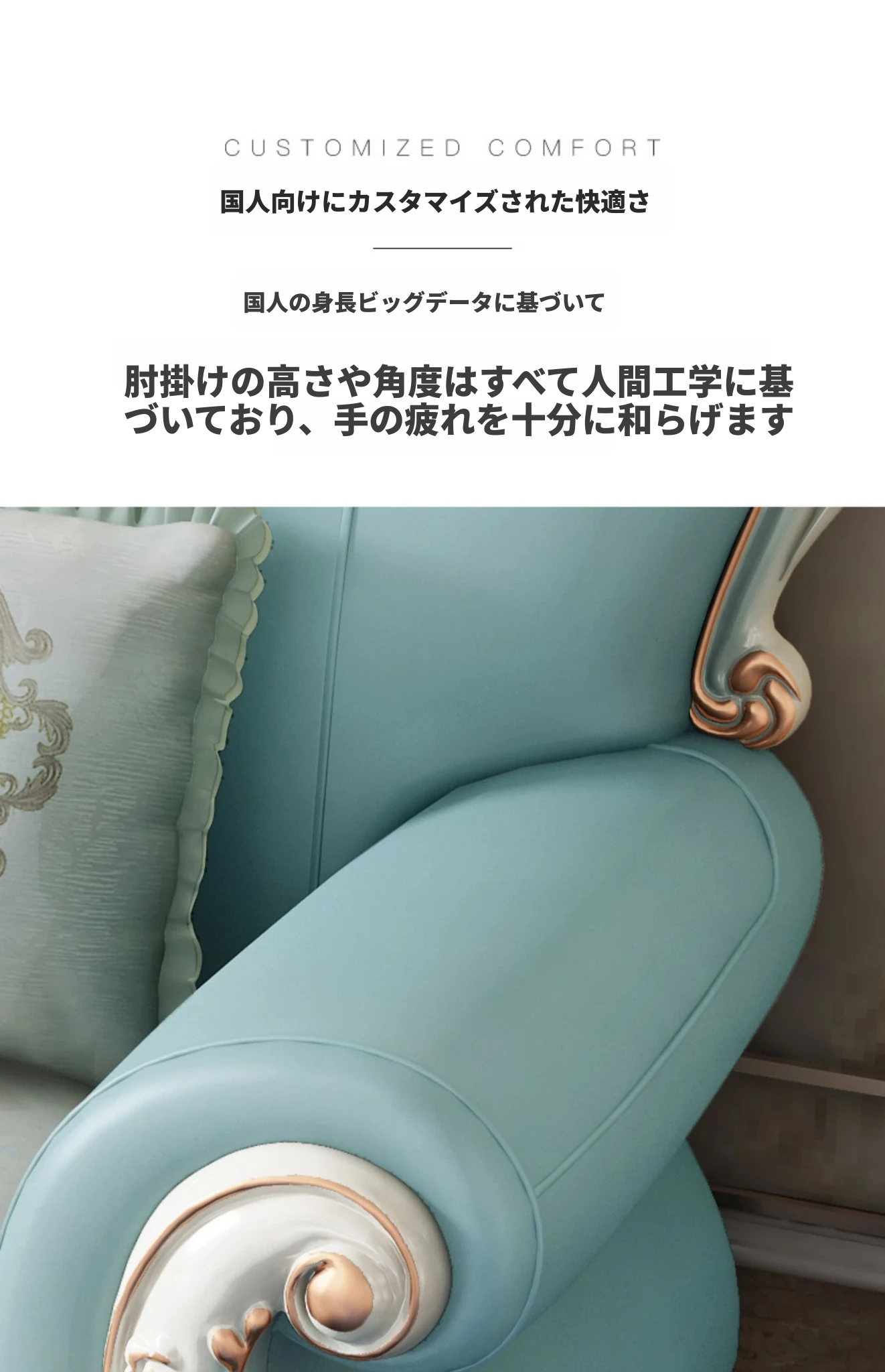 フラッグシップ版:天ブルー/本革+座面洗浄不要生地+高反発ウレタン+ラテックスパッド松材内枠