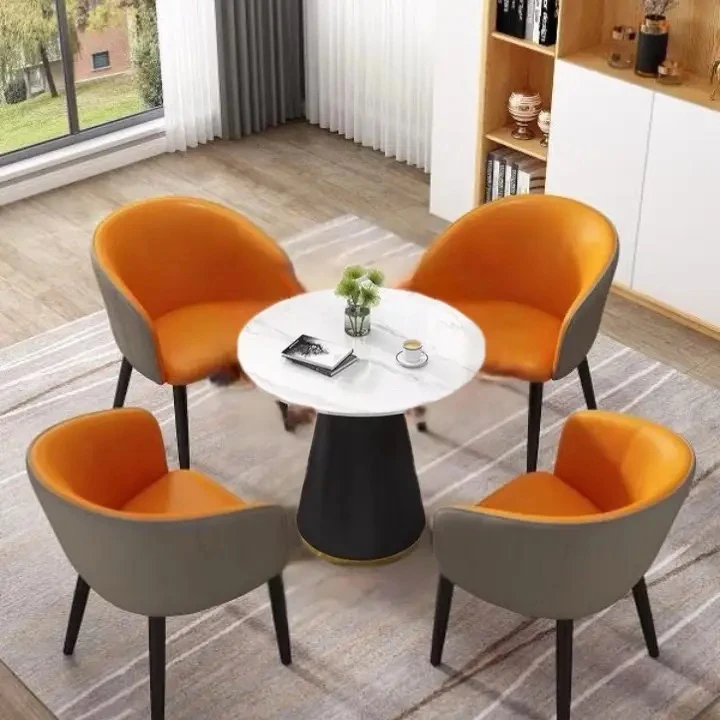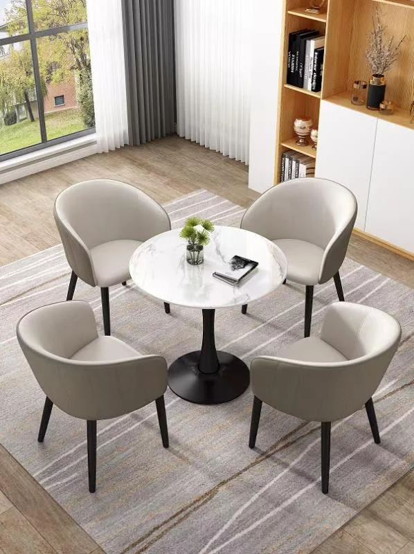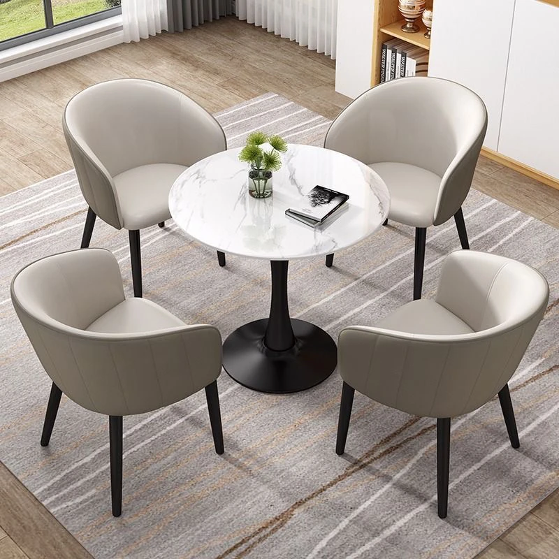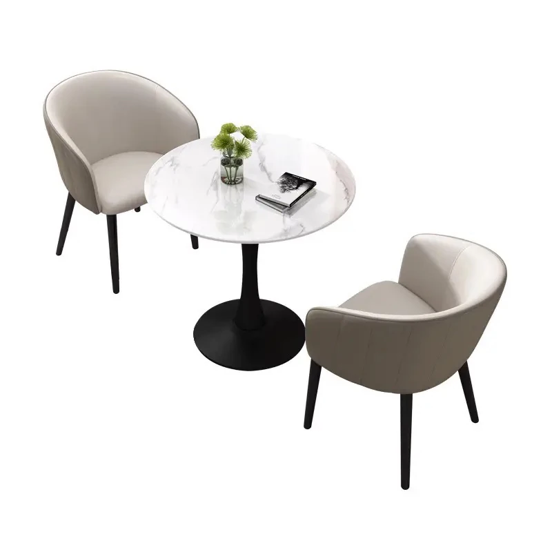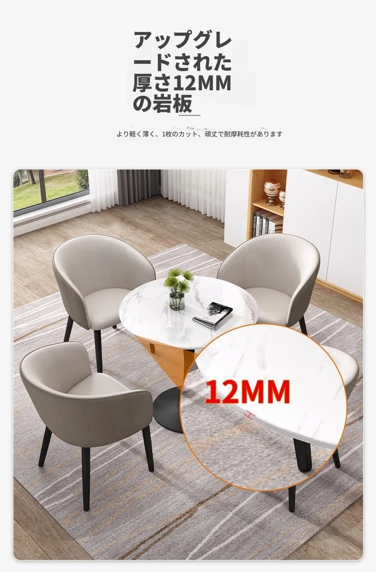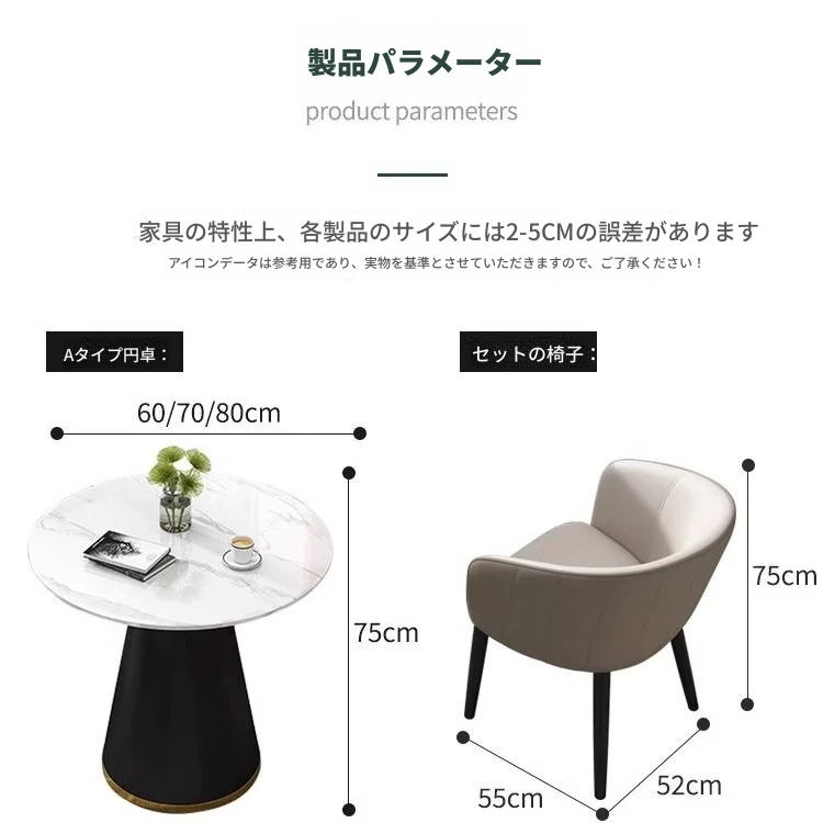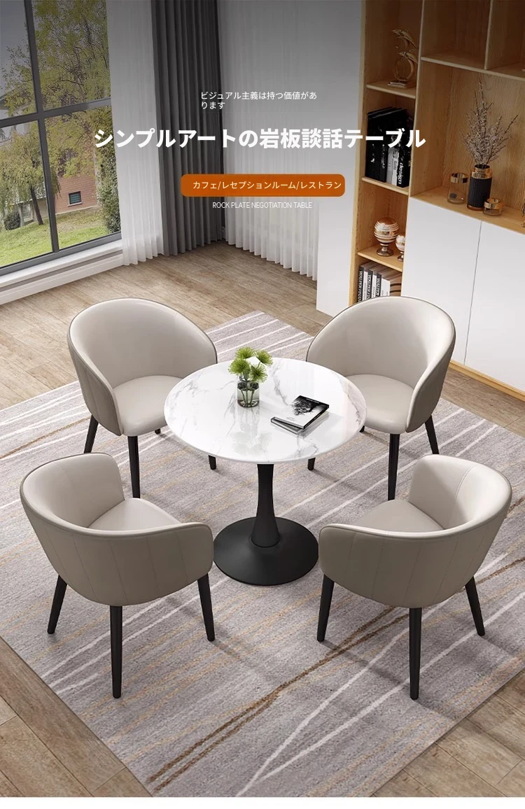 軽やかな北欧スタイルのラウンドテーブル - ビジネスやカフェに最適!洗練されたデザインで、商談やリラックスタイムを演出。バルコニーやショールームにもぴったりの、スタイリッシュなテーブル&チェアセット!