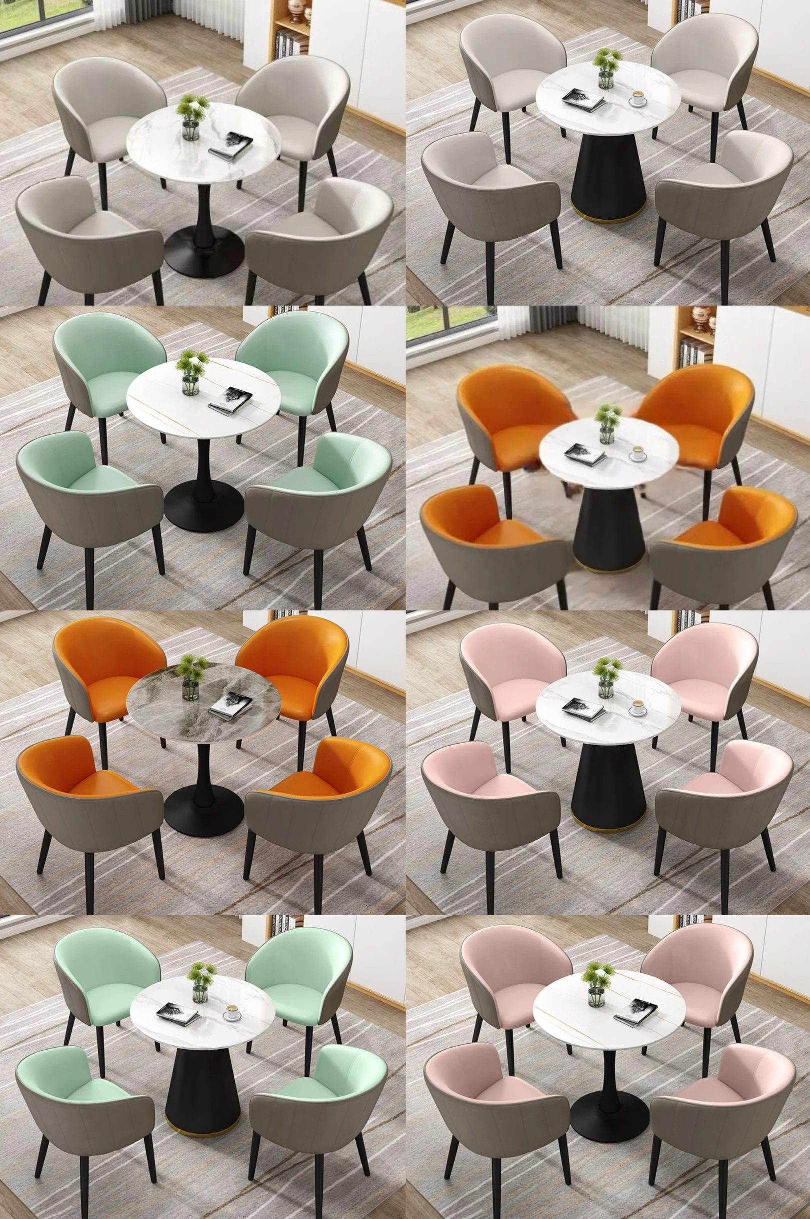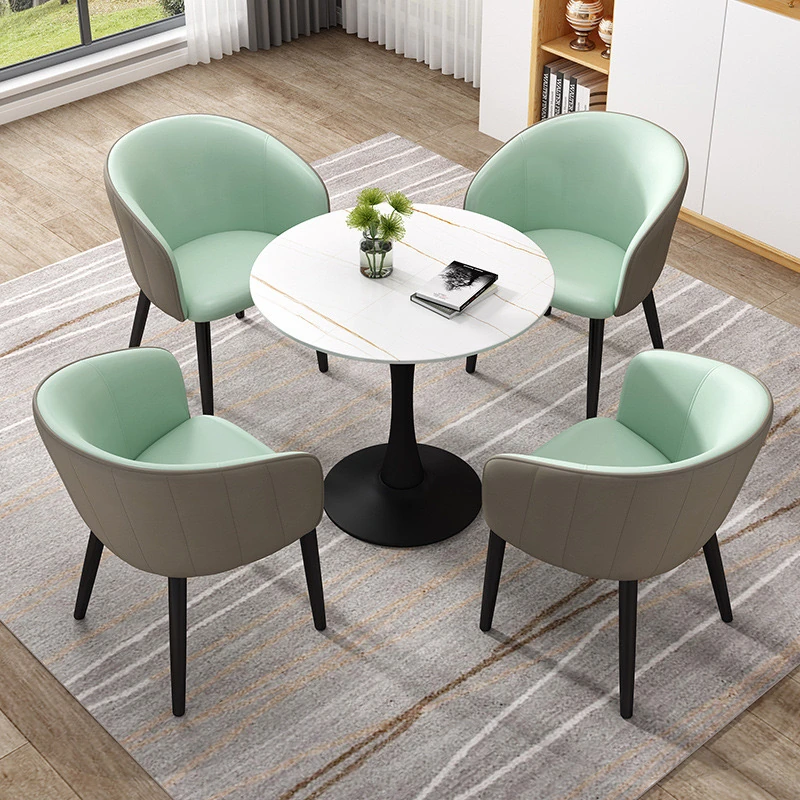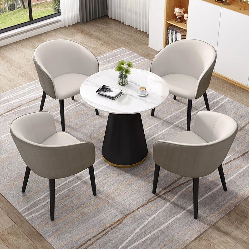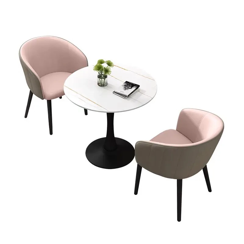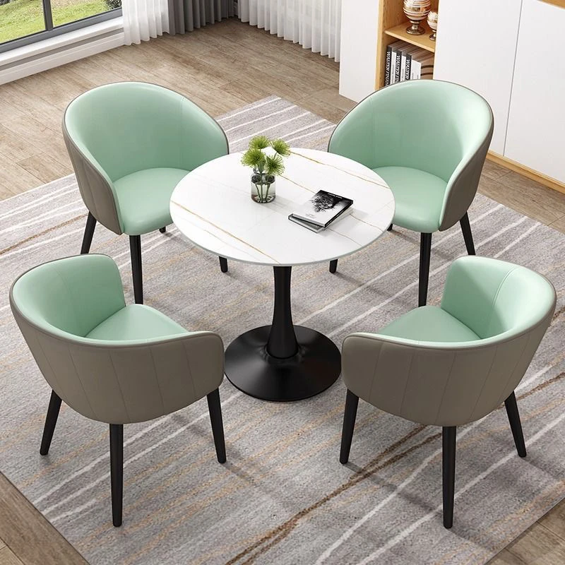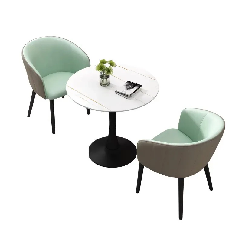 軽やかな北欧スタイルのラウンドテーブル - ビジネスやカフェに最適!洗練されたデザインで、商談やリラックスタイムを演出。バルコニーやショールームにもぴったりの、スタイリッシュなテーブル&チェアセット!