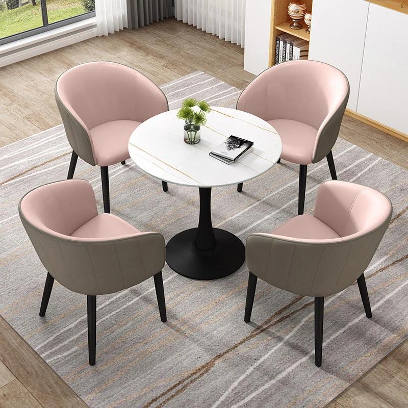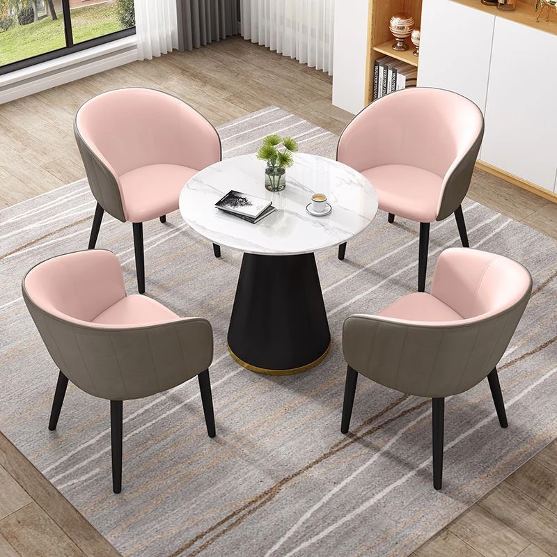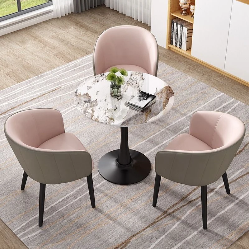 80センチ岩板太脚テーブル 外灰 内ピンク椅子 11テーブル4椅子