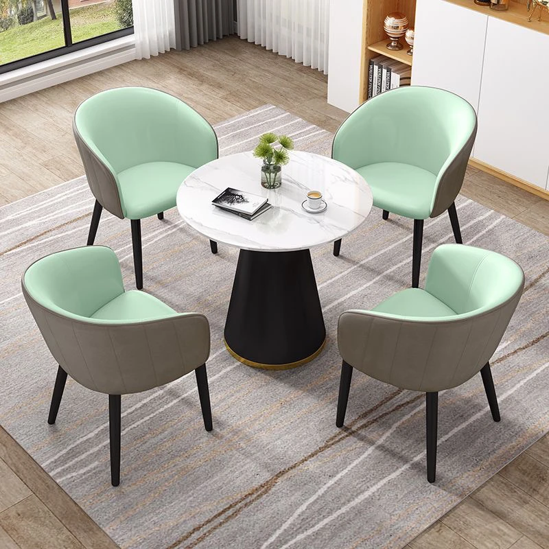 80センチ岩板細脚テーブル 外灰 内緑椅子 11テーブル4椅子