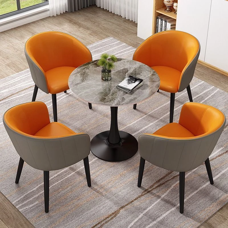 80センチ岩板細脚テーブル 外灰 内オレンジ椅子 11テーブル4椅子
