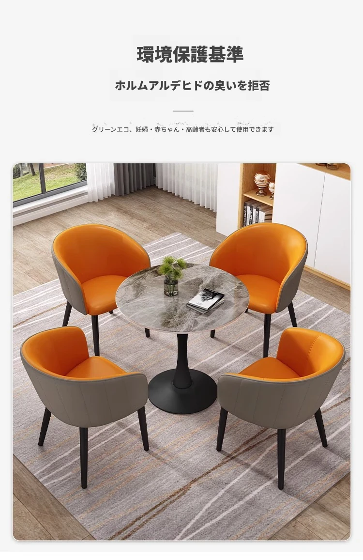 80センチ岩板太脚テーブル 外灰 内オレンジ椅子 11テーブル4椅子