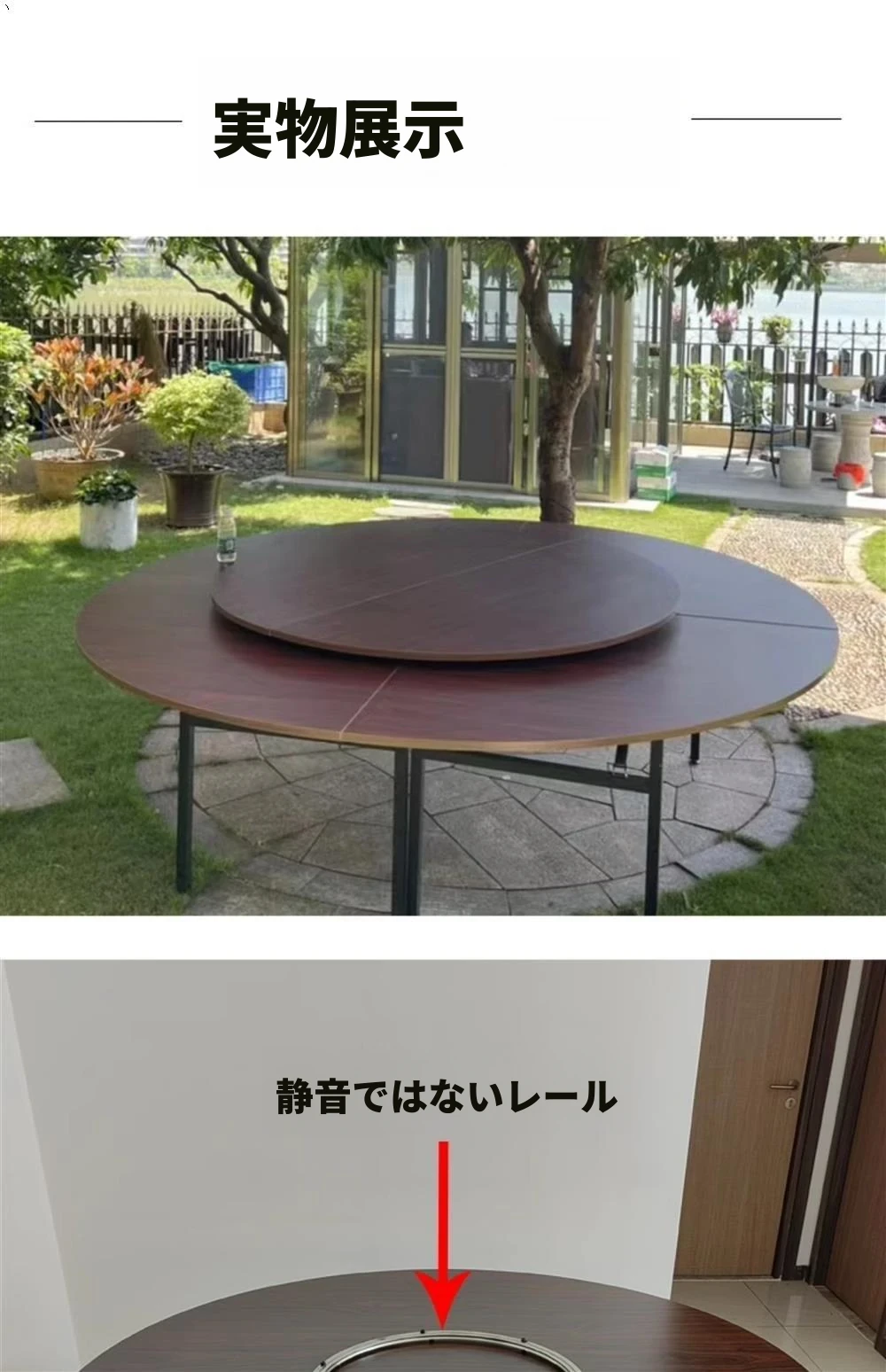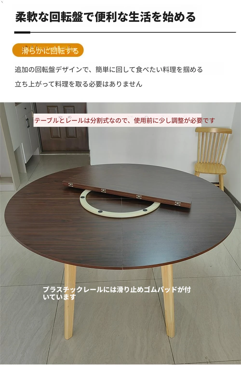 折りたたみ式円形テーブル - 木製デザイン、1.2m/1.5mサイズ選べる!手動・電動回転機能付き、家庭用に最適なベースで、食事やパーティーをもっと楽しく!