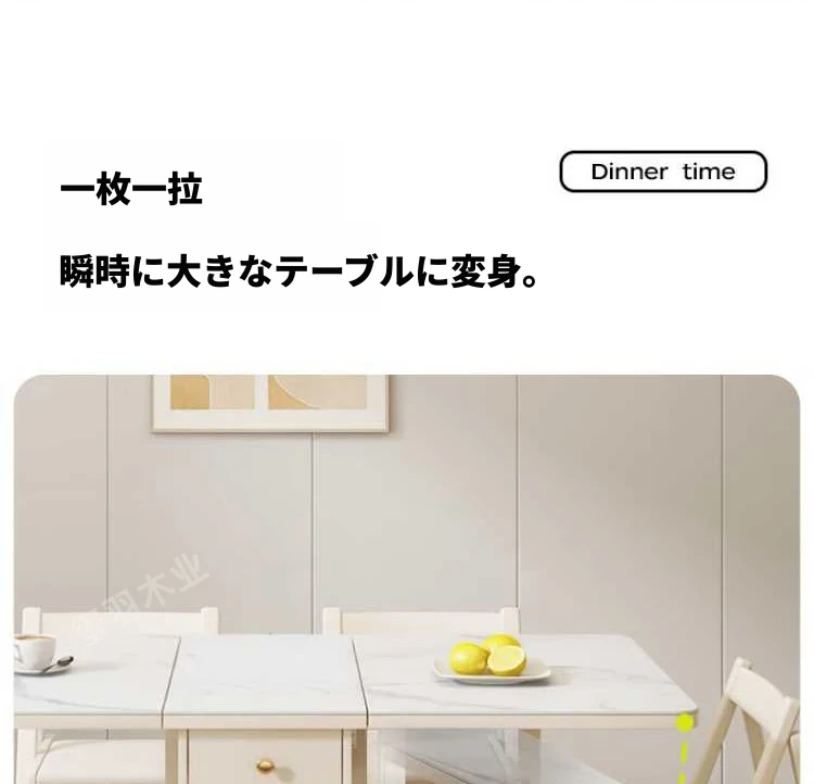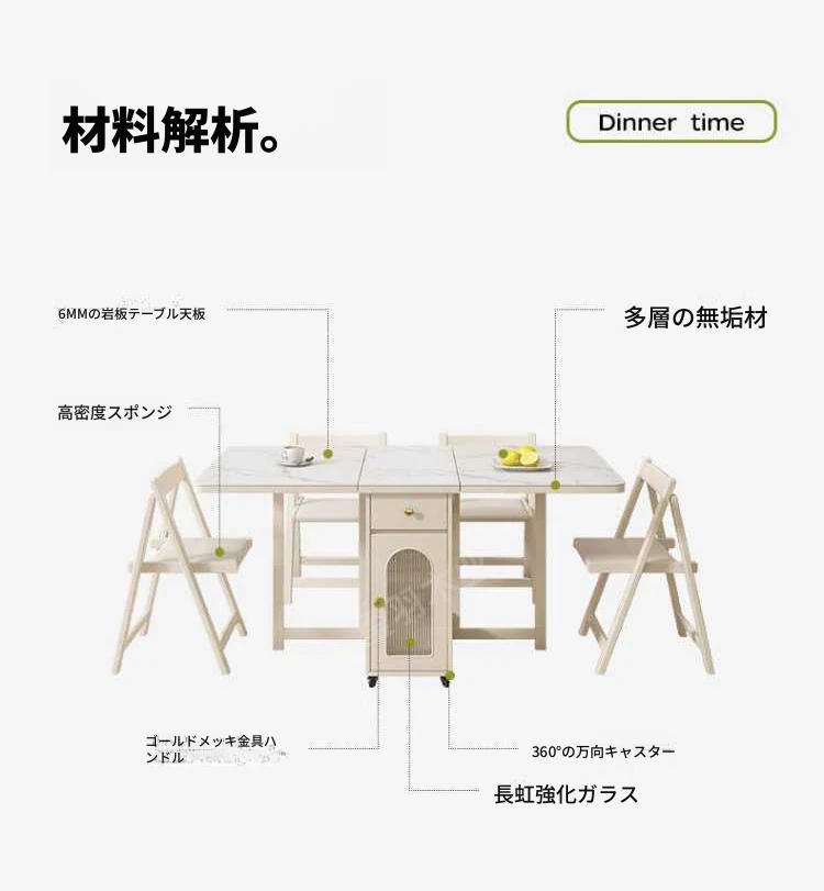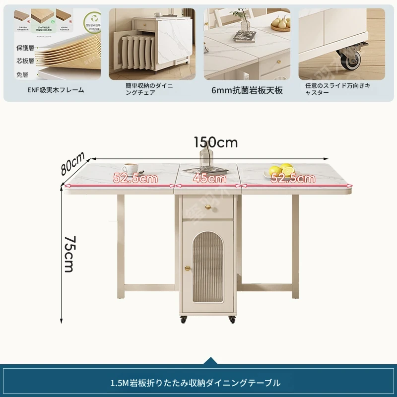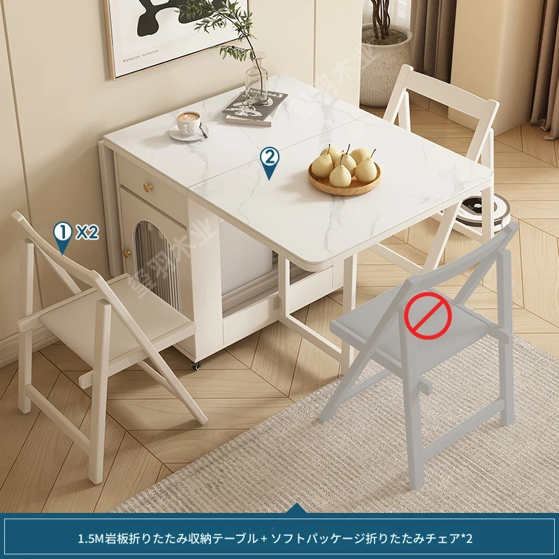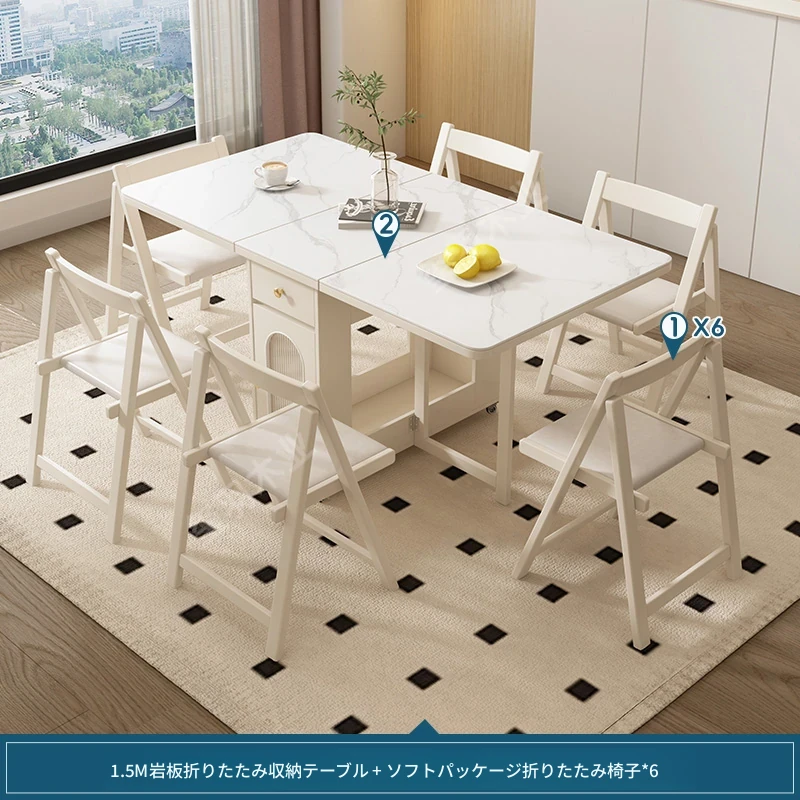 1.5メートル折りたたみダイニングテーブル(抗菌岩板+無垢材質) >>6脚の椅子を収納可能