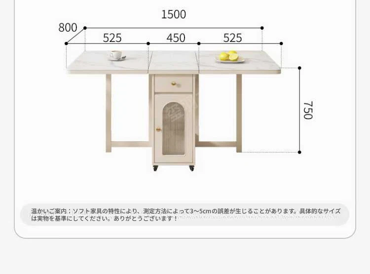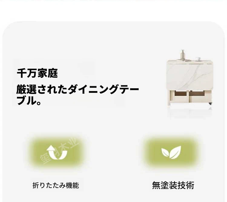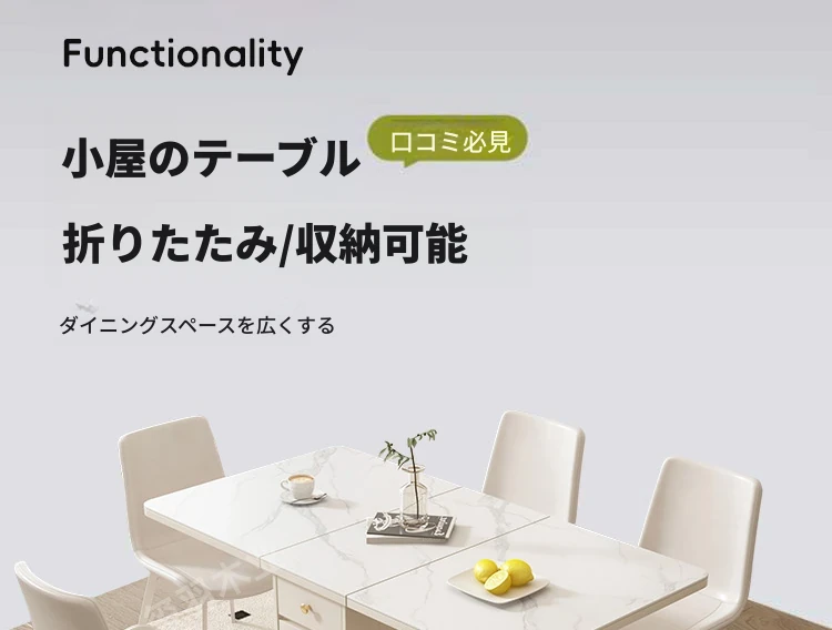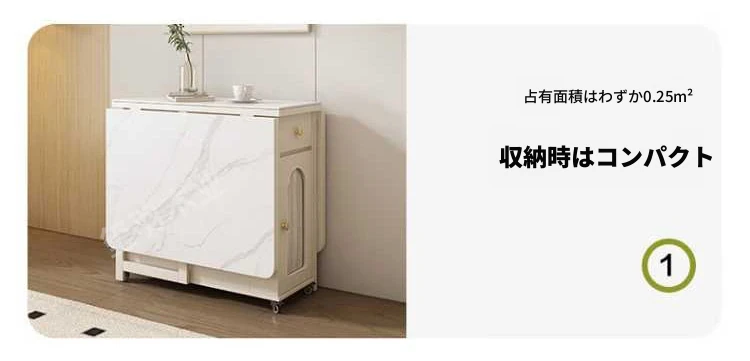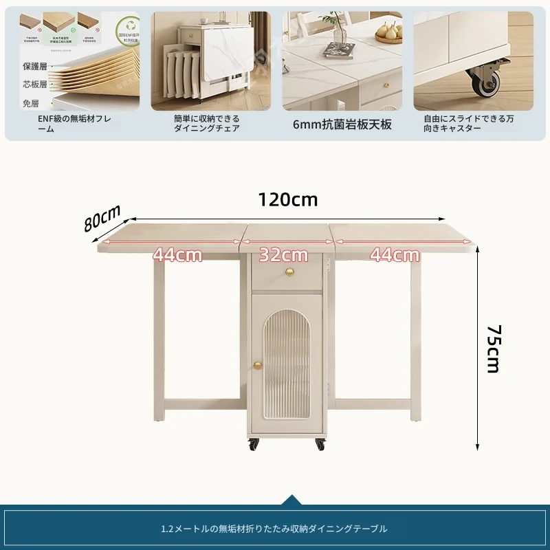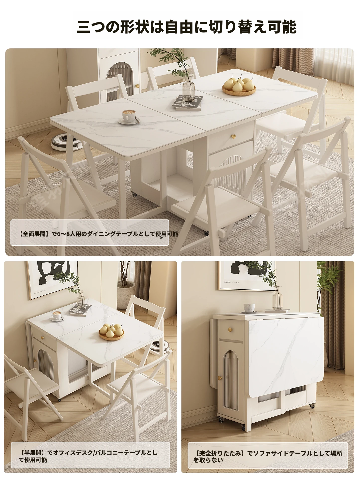 1.5メートル折りたたみダイニングテーブル(抗菌岩板+無垢材質) >>6脚の椅子を収納可能