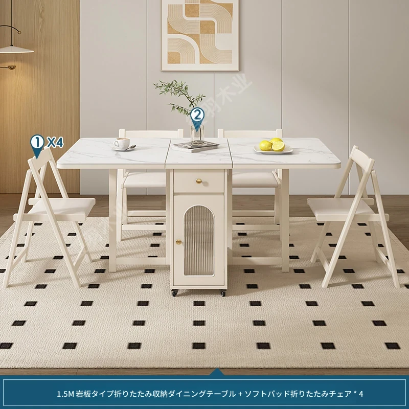 1.5メートル折りたたみダイニングテーブル+折りたたみ椅子*4(抗菌岩板+無垢材質) ⭐先着10名様に100元現金クーポン返金