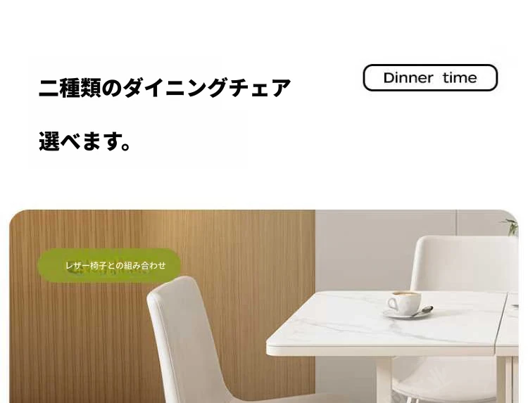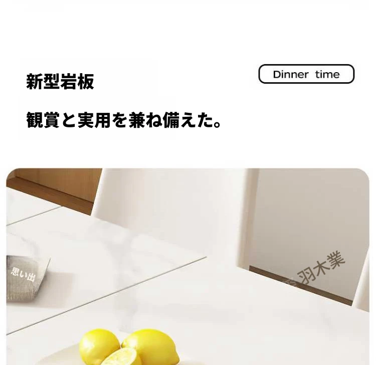 1.5メートル折りたたみダイニングテーブル+皮椅子*6(抗菌岩板+無垢材質) ⭐先着10名様に100元現金クーポン返金