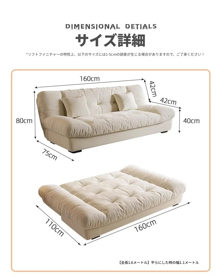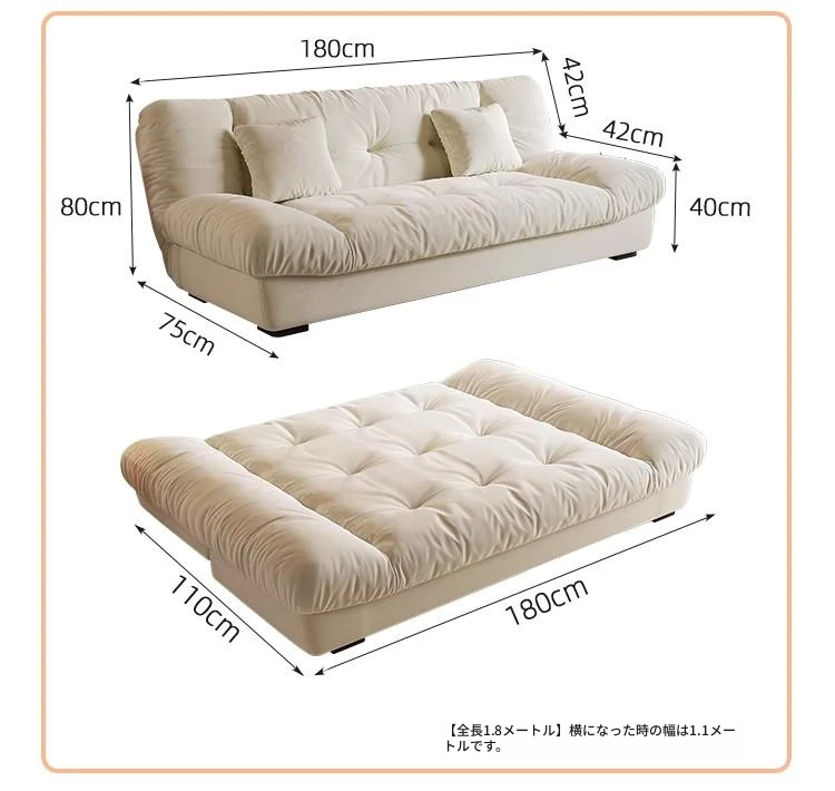 【新疆送料無料】2025年版 フランス風 クラウドソファベッド 折りたたみ式 二用途 可寝可躺 リビング・寝室に最適!スタイリッシュで快適な眠りをお届けします!