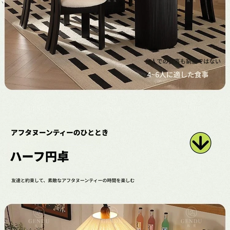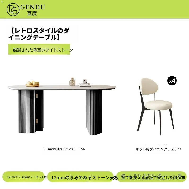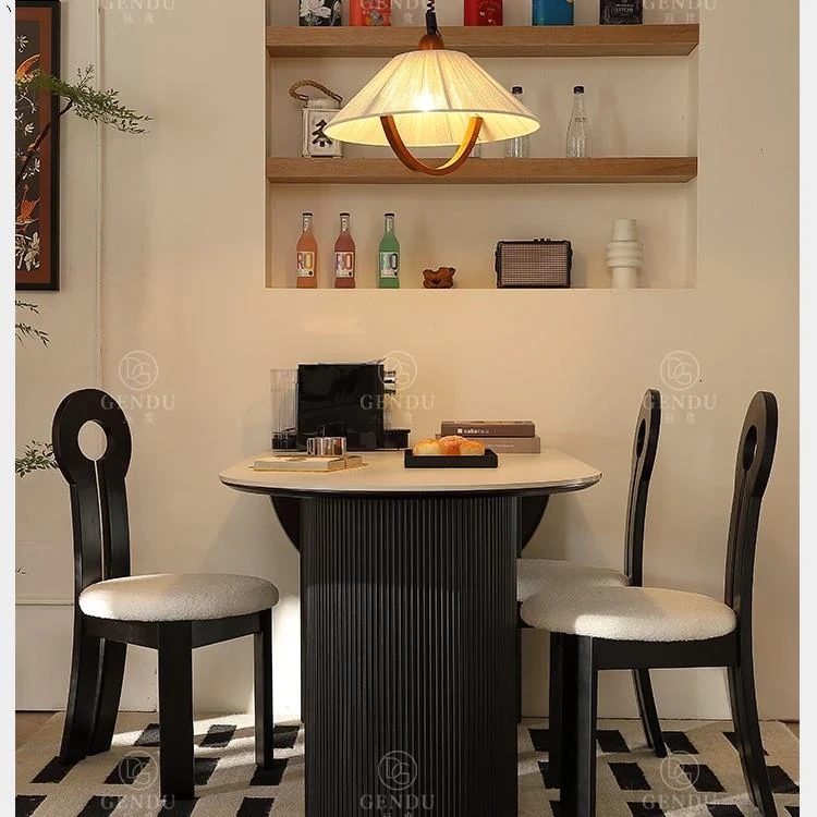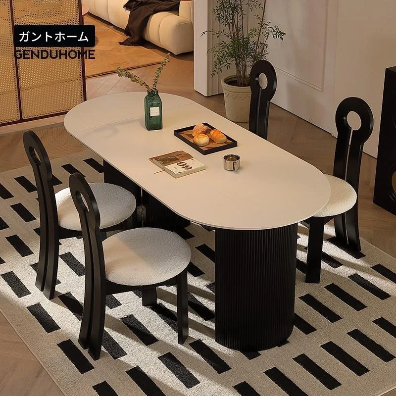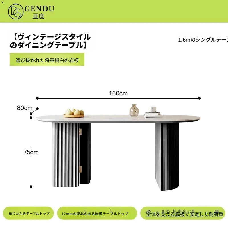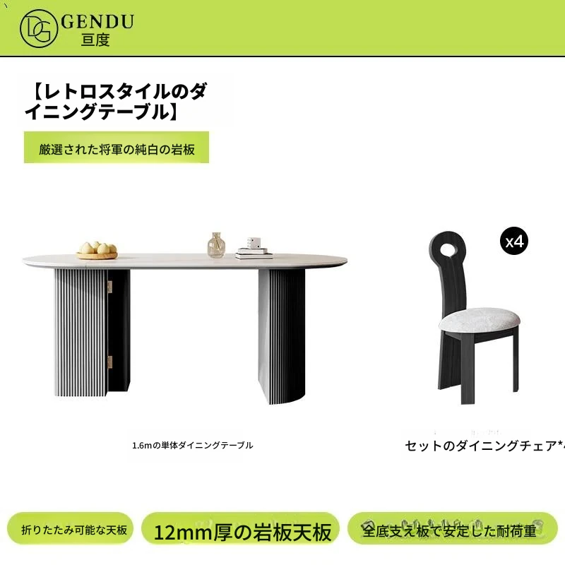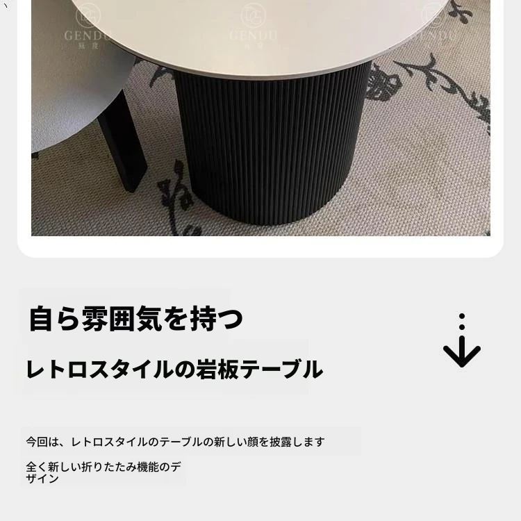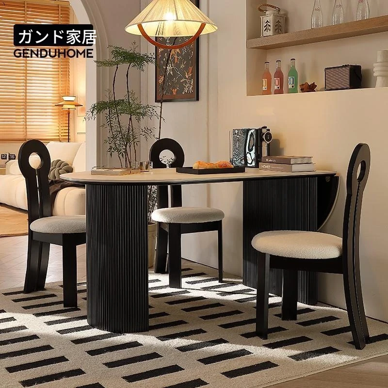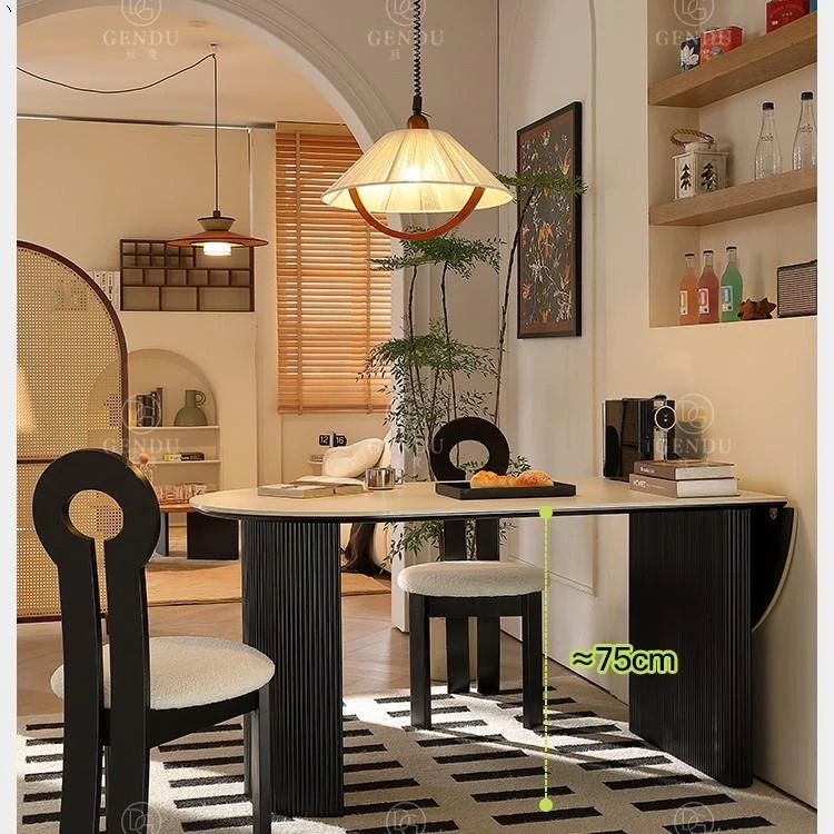 折りたたみ式の半楕円形ロック板ダイニングテーブルセット - フランス風クリームカラーのアンティークスタイル、小型住宅に最適な伸縮可能なブラックテーブル!おしゃれな空間を演出し、家族や友人との楽しい食事タイムをお楽しみください。