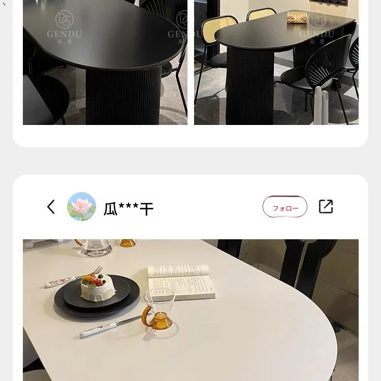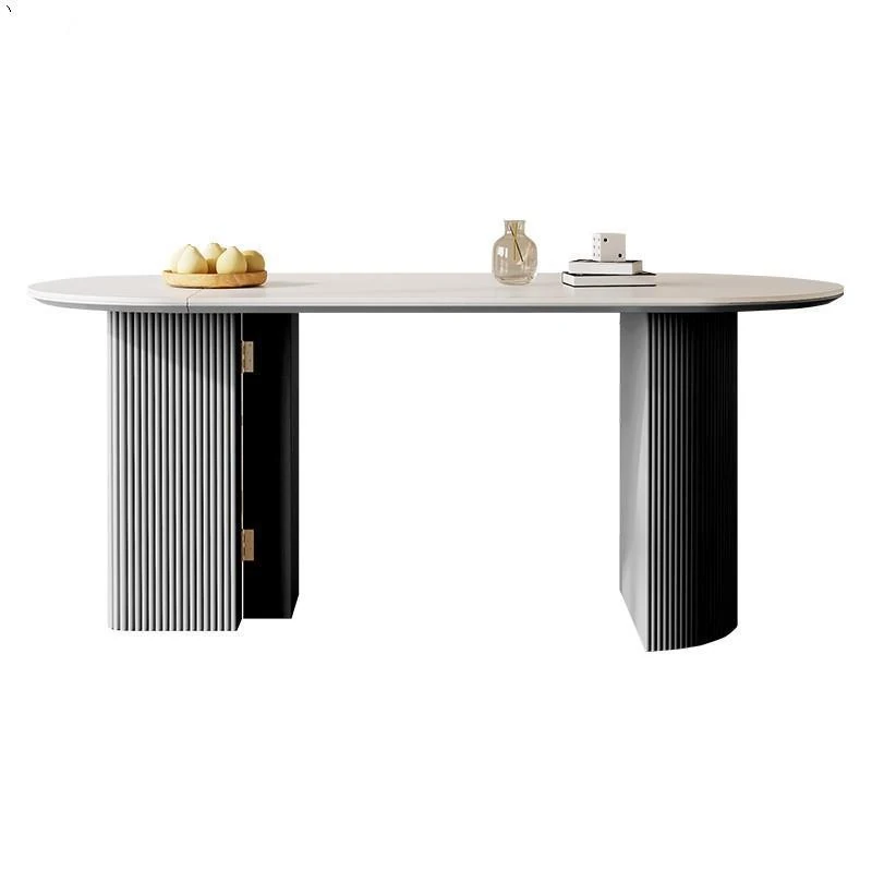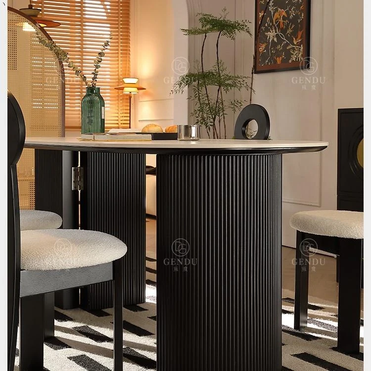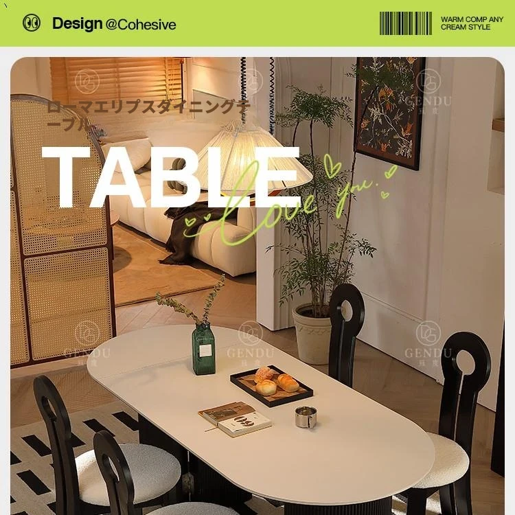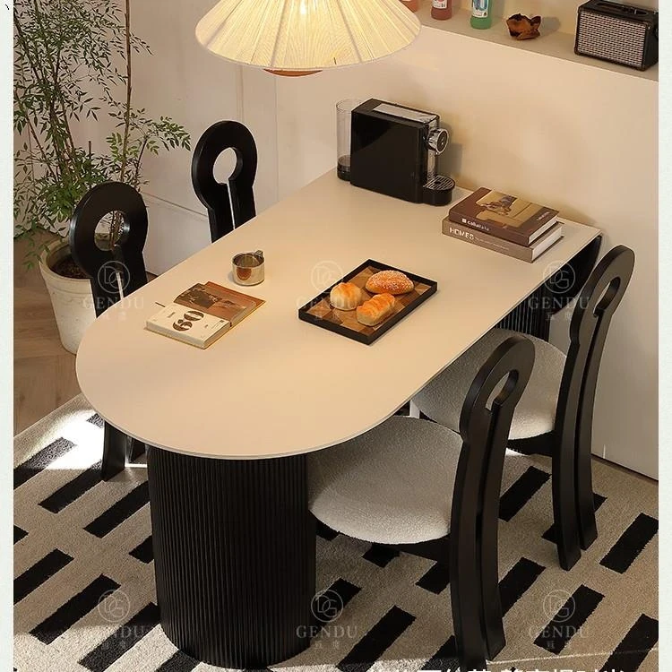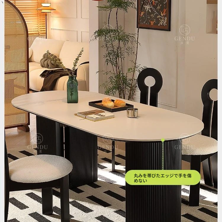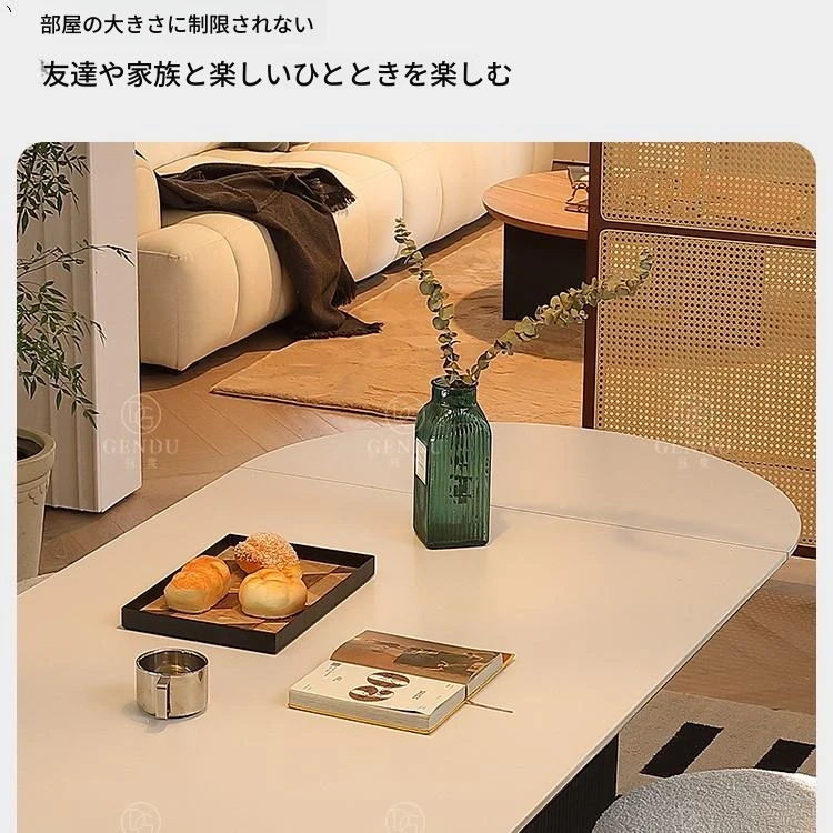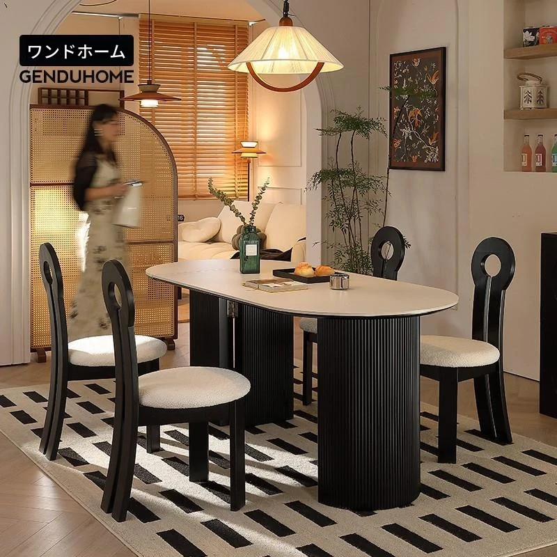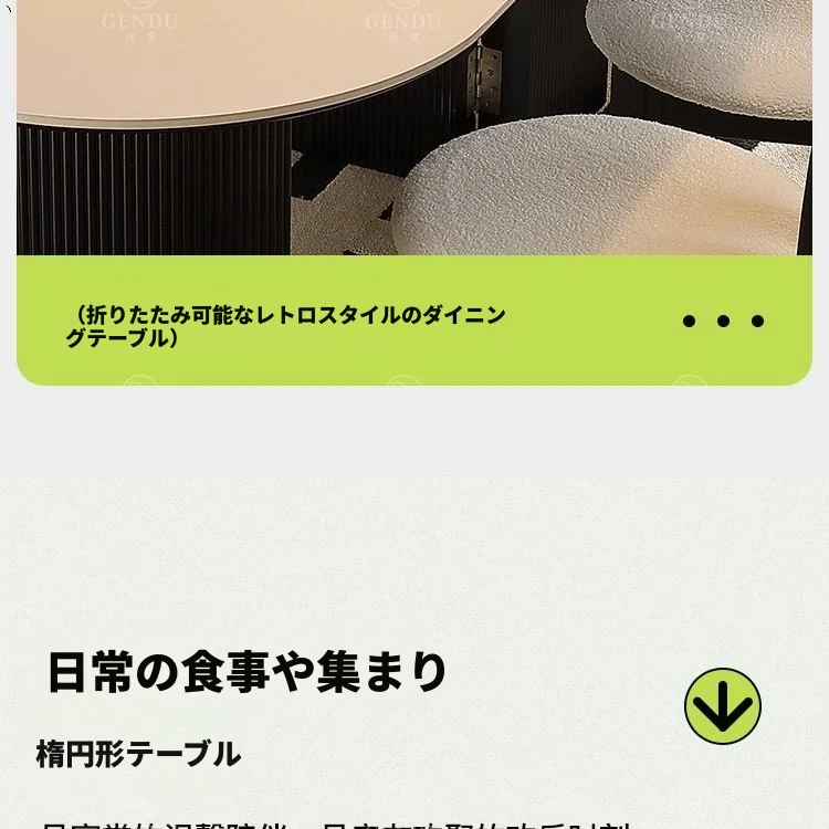 折りたたみ式の半楕円形ロック板ダイニングテーブルセット - フランス風クリームカラーのアンティークスタイル、小型住宅に最適な伸縮可能なブラックテーブル!おしゃれな空間を演出し、家族や友人との楽しい食事タイムをお楽しみください。