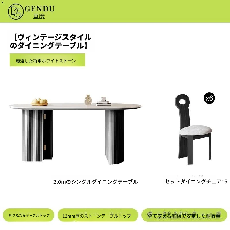 2.0メートルダイニングテーブル+6椅子【将軍岩板】 デザインチェア