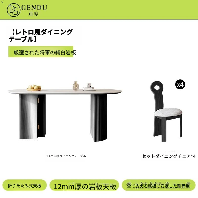 1.4メートルダイニングテーブル+4椅子#1【将軍岩板】 デザインチェア